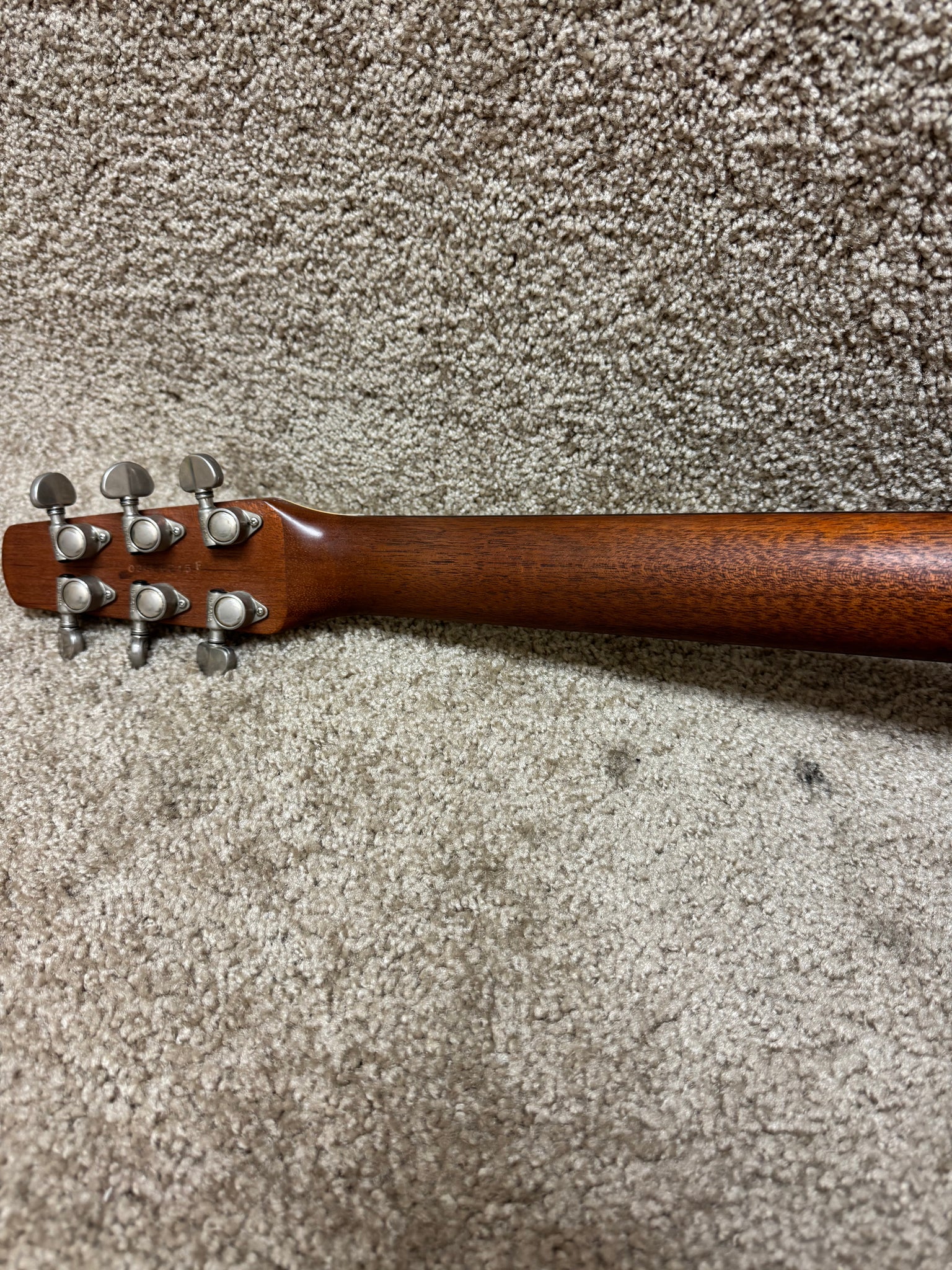 Lots of cosmetic damage. Scratches, dings, deterioration. Plays very well and the cosmetic wear adds an interesting element to the guitar.