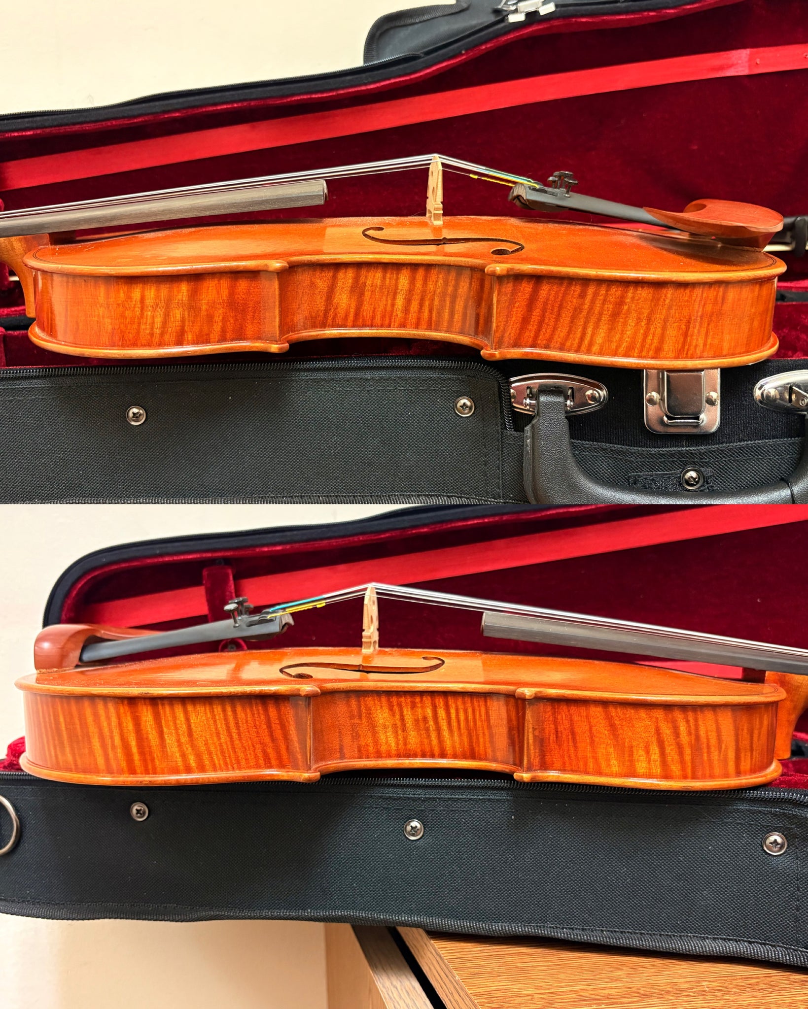 This Stefan Petrov Trista Select 4/4 violin is a copy of the world-renowned violins made by Antonio Stradivari. The Trista Select is made in small quantities. The makers hand-select all the materials they use. The maple back, sides, and neck are highly figured and nicely matched. This instrument is in excellent shape overall, showing only light cosmetic wear from in-store play. Includes case and bow. This is #1103 of this run.