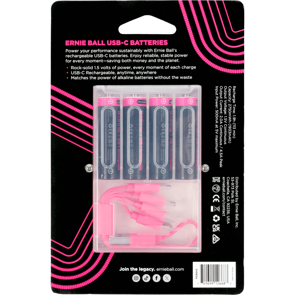 Ernie Ball USB-C Rechargeable AA Battery by Paleblue 4-Pack