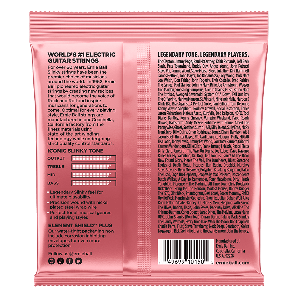 Zippy Slinkys are the lightest gauge combination offered by Ernie Ball. This combination is perfect for players looking for a snappy set of strings with extra zing that are easy to bend and provides the least amount of tension. Gauges .007, .009, .013, .020w, .026, .036,
