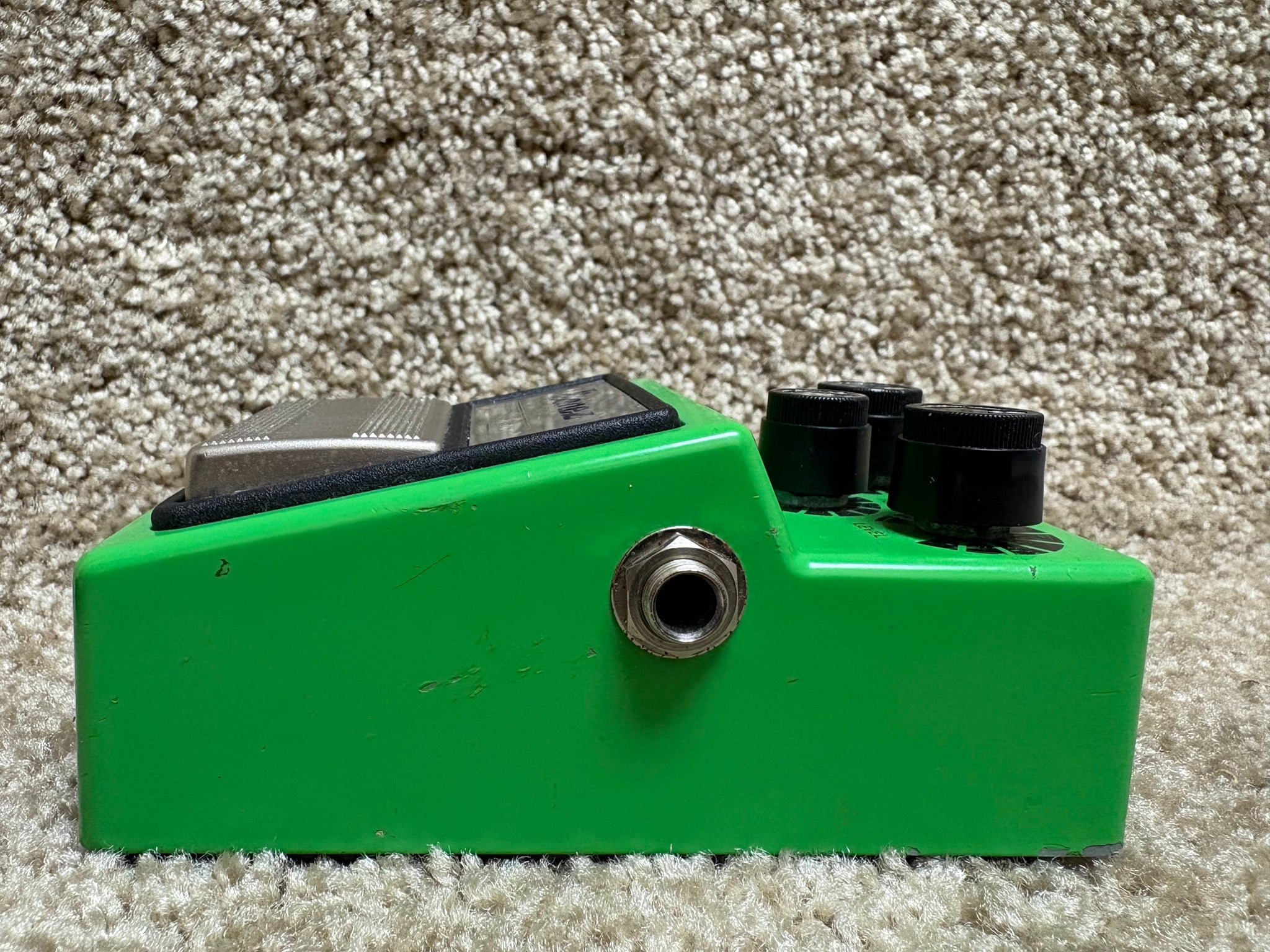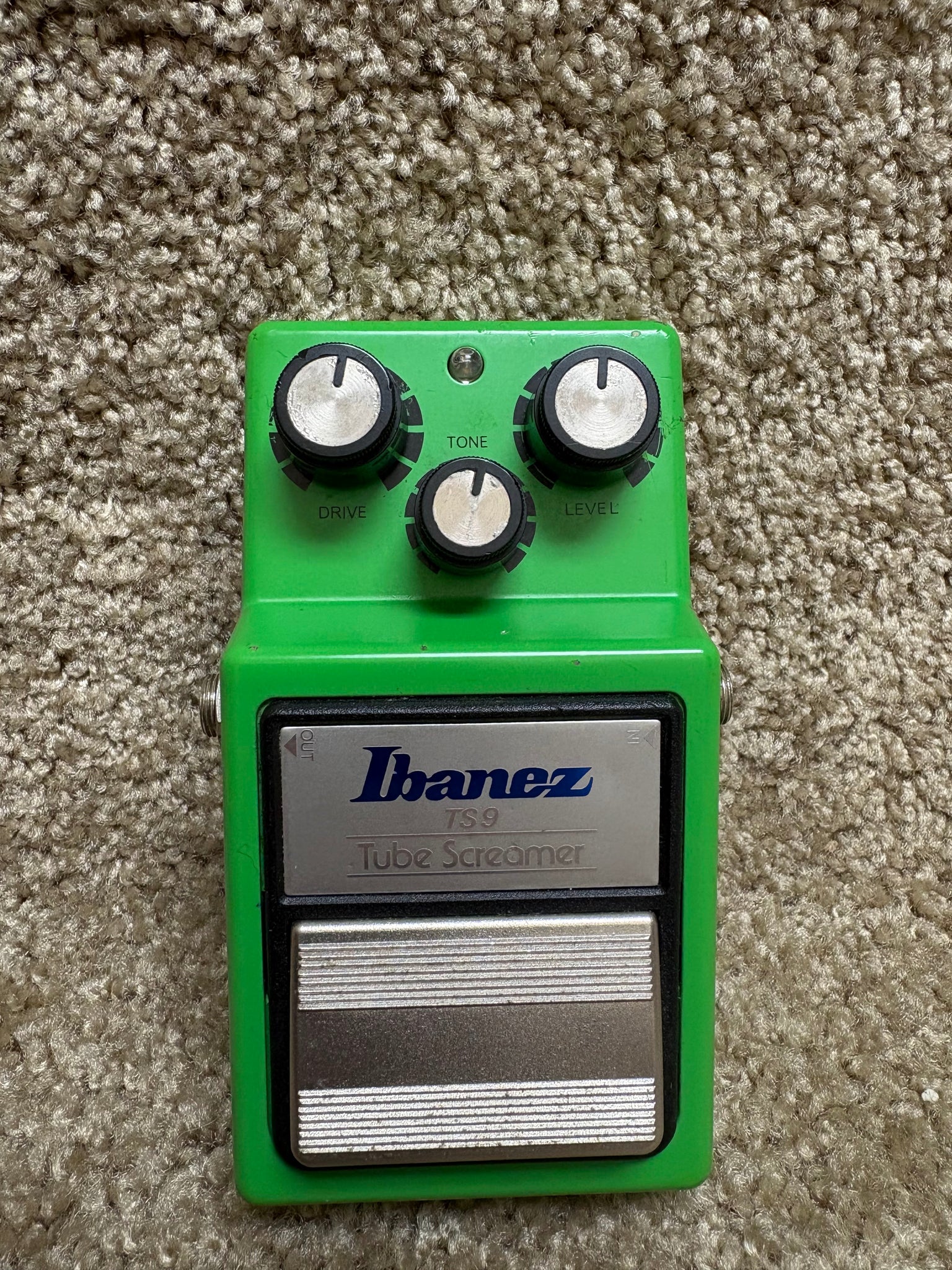 The Ibanez TS9 Tube Screamer is a reissue that's just like the original in so many ways. Same housing, same instantly identifiable green paint, and the same crankin' overdrive that makes it one of the all-time classics in guitar effects. This pedal shows minor scratches on its front and sides with little wear on the bottom as well. All features on this TS9 appear to work as expected.