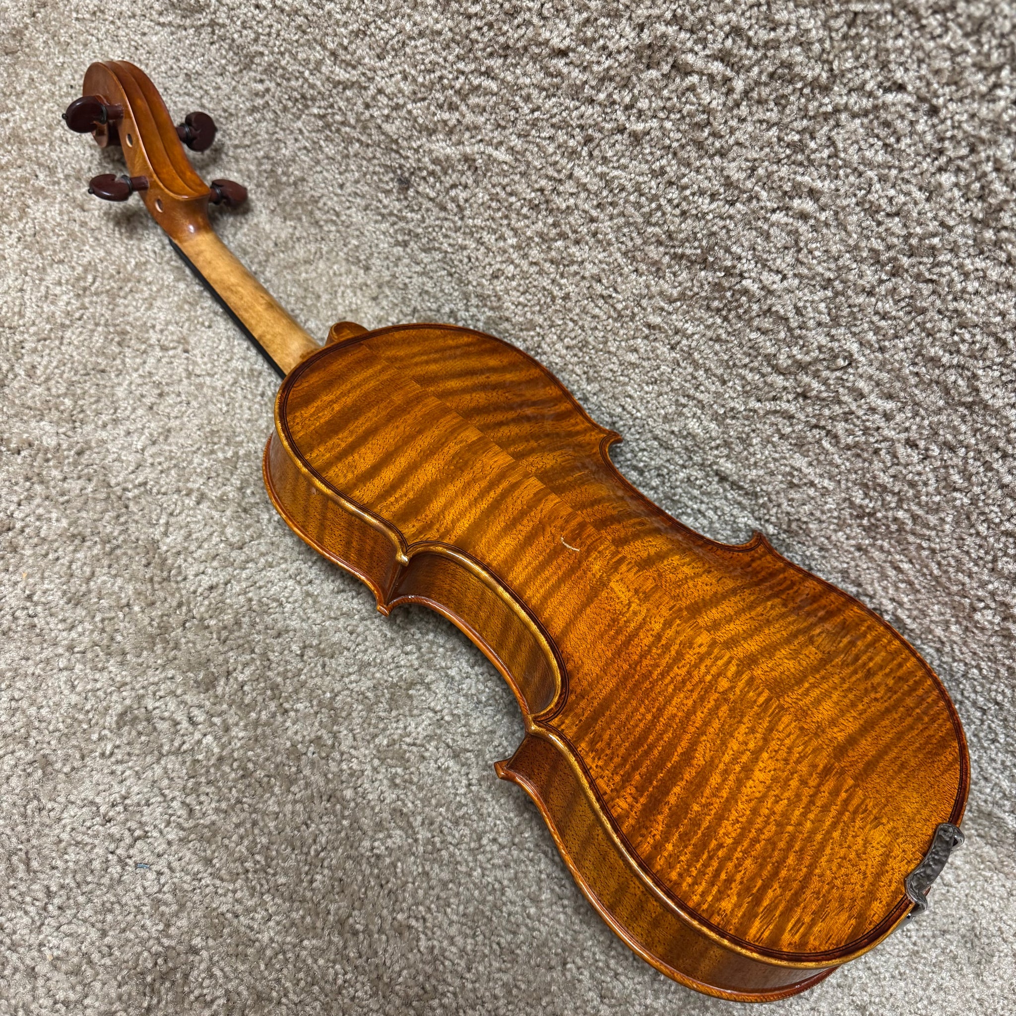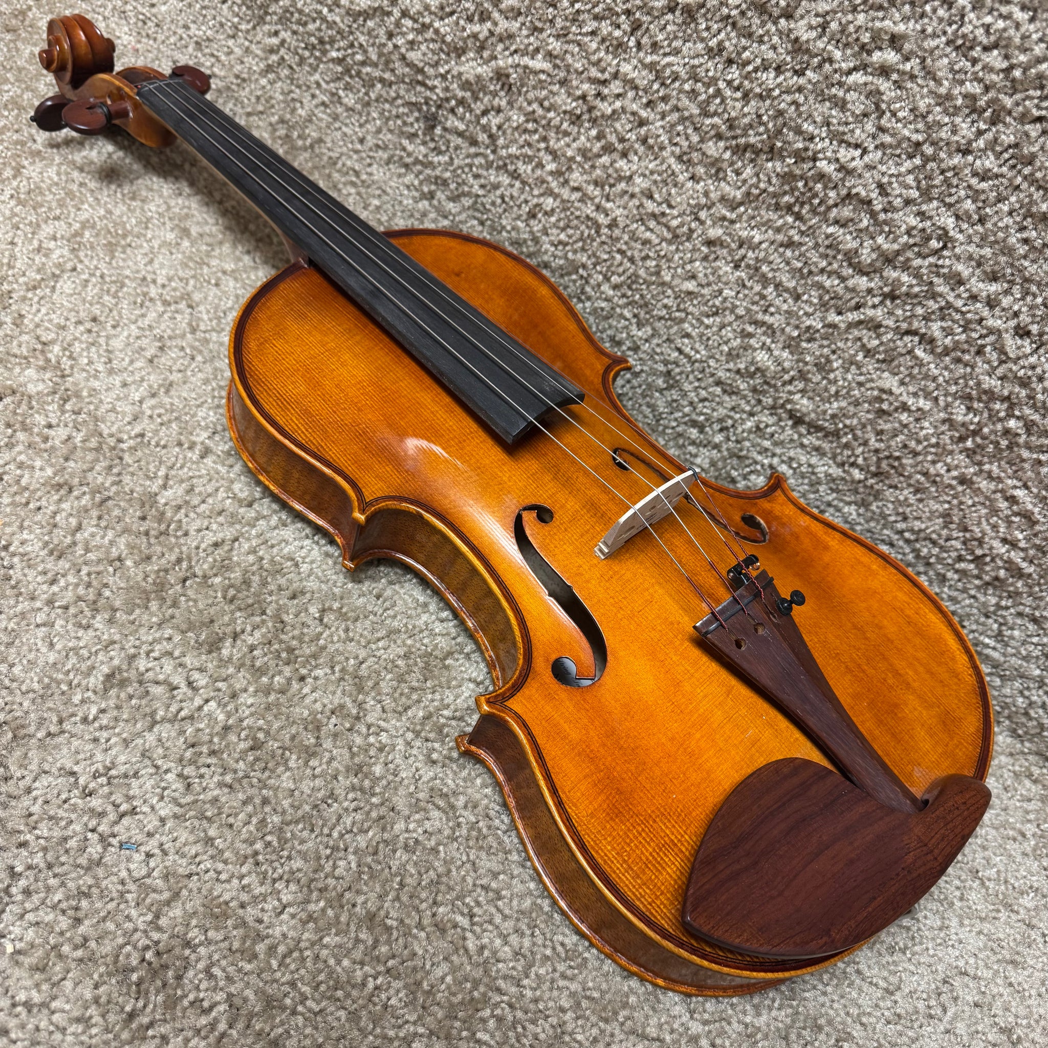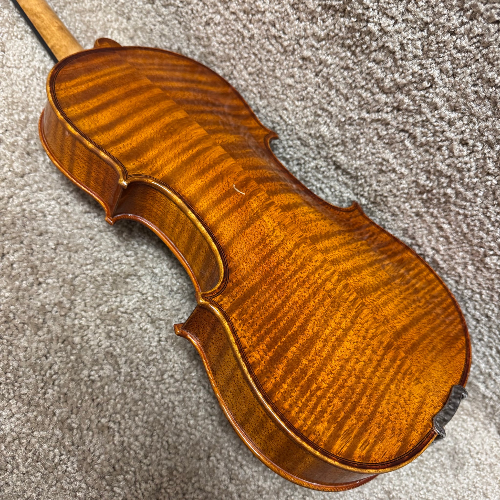 This violin does display light signs of wear. There are some scratches throughout the body and nicks around the edges which are pictured below, but please feel free to reach out with further questions.