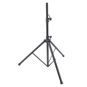 "The Proline tripod speaker stand features a center steel shaft for maximum support and an aluminum body for lighter weight. Locking pins are included for extra safety. 150-lb. capacity. Fits 1.375″ or 1.5″ speaker mounts. Height adjusts from 45″-73″."