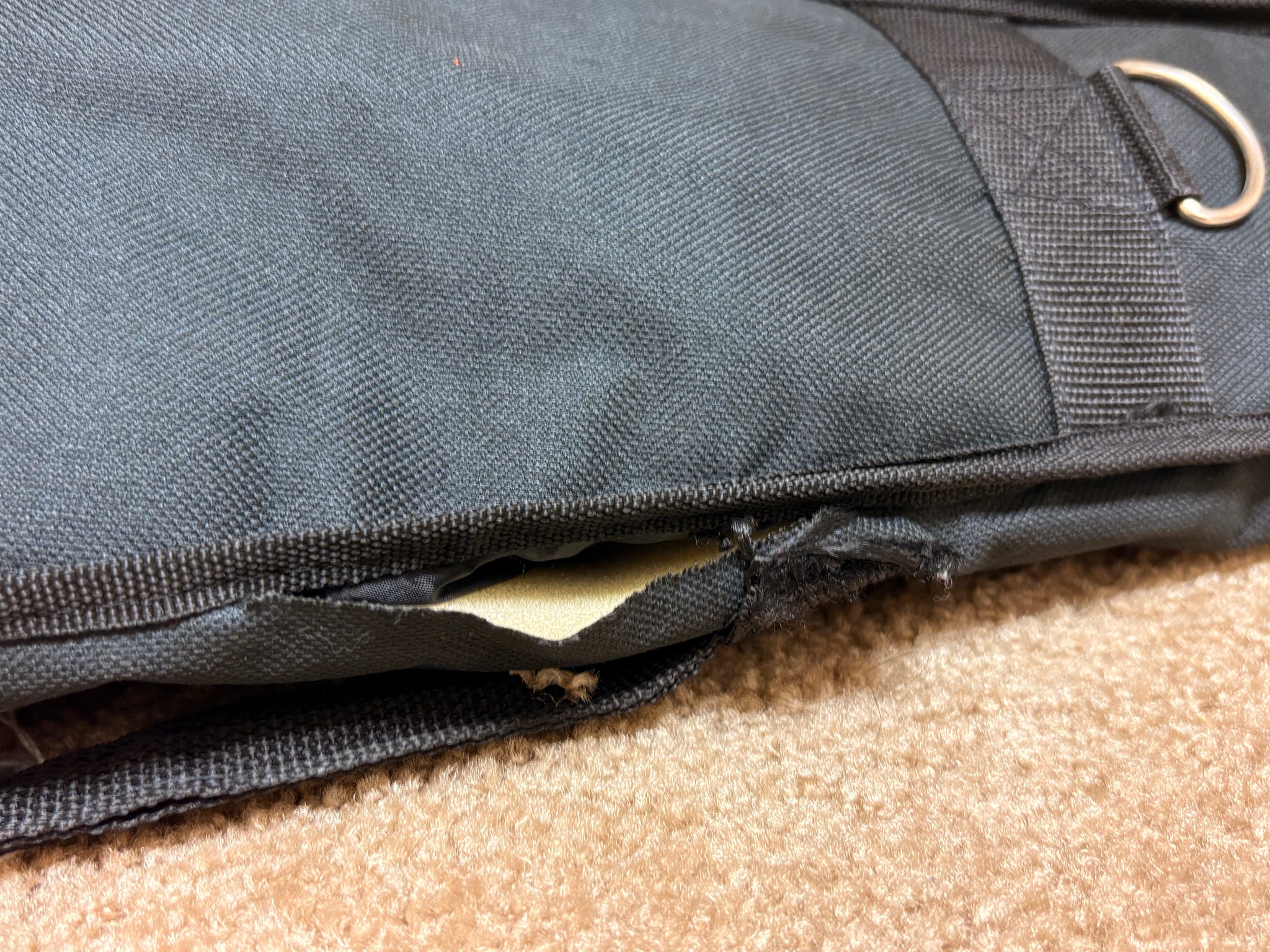 Comes with Applecreek Zip Bag - has a tear on the underside - see photos. Bag comes with strap (in pocket).