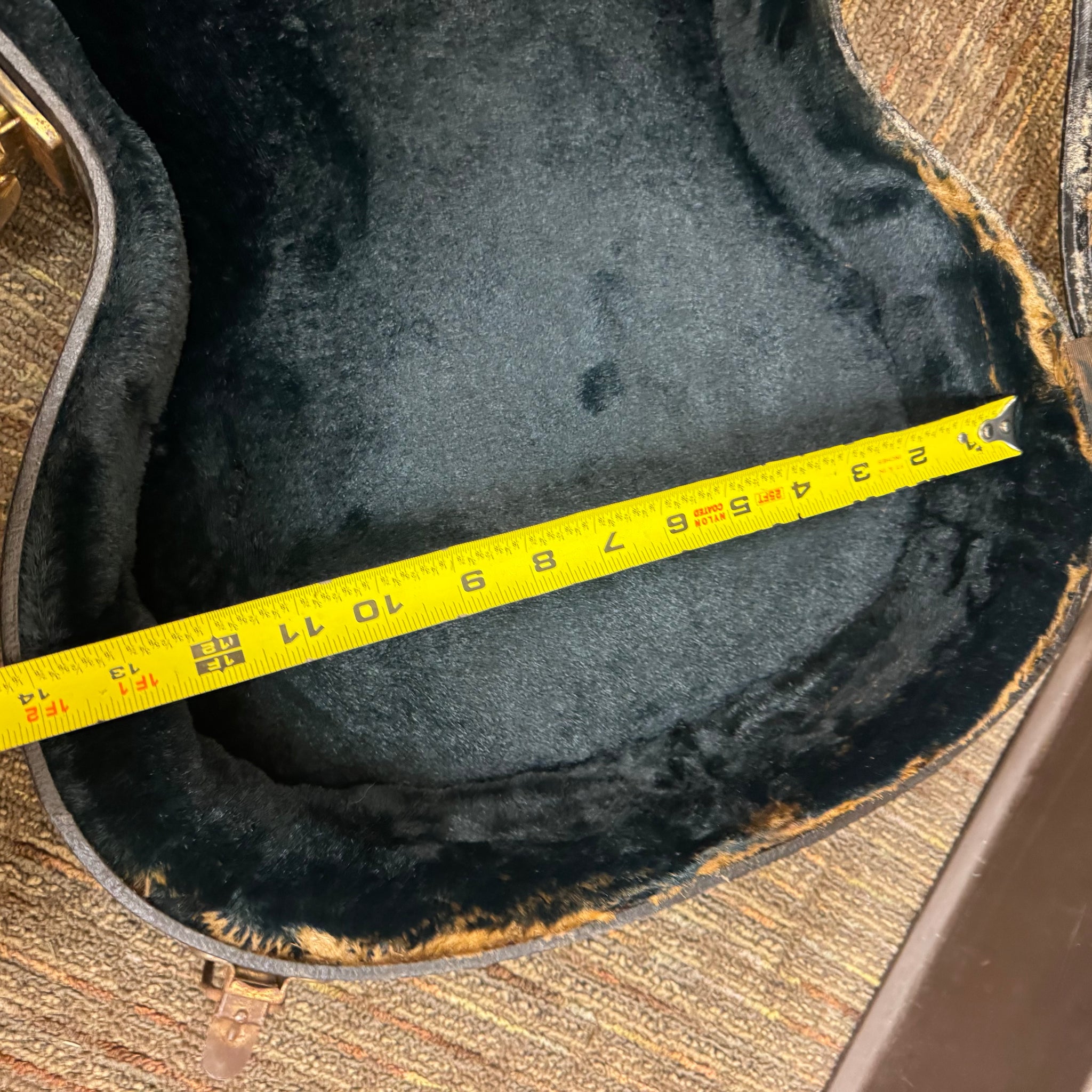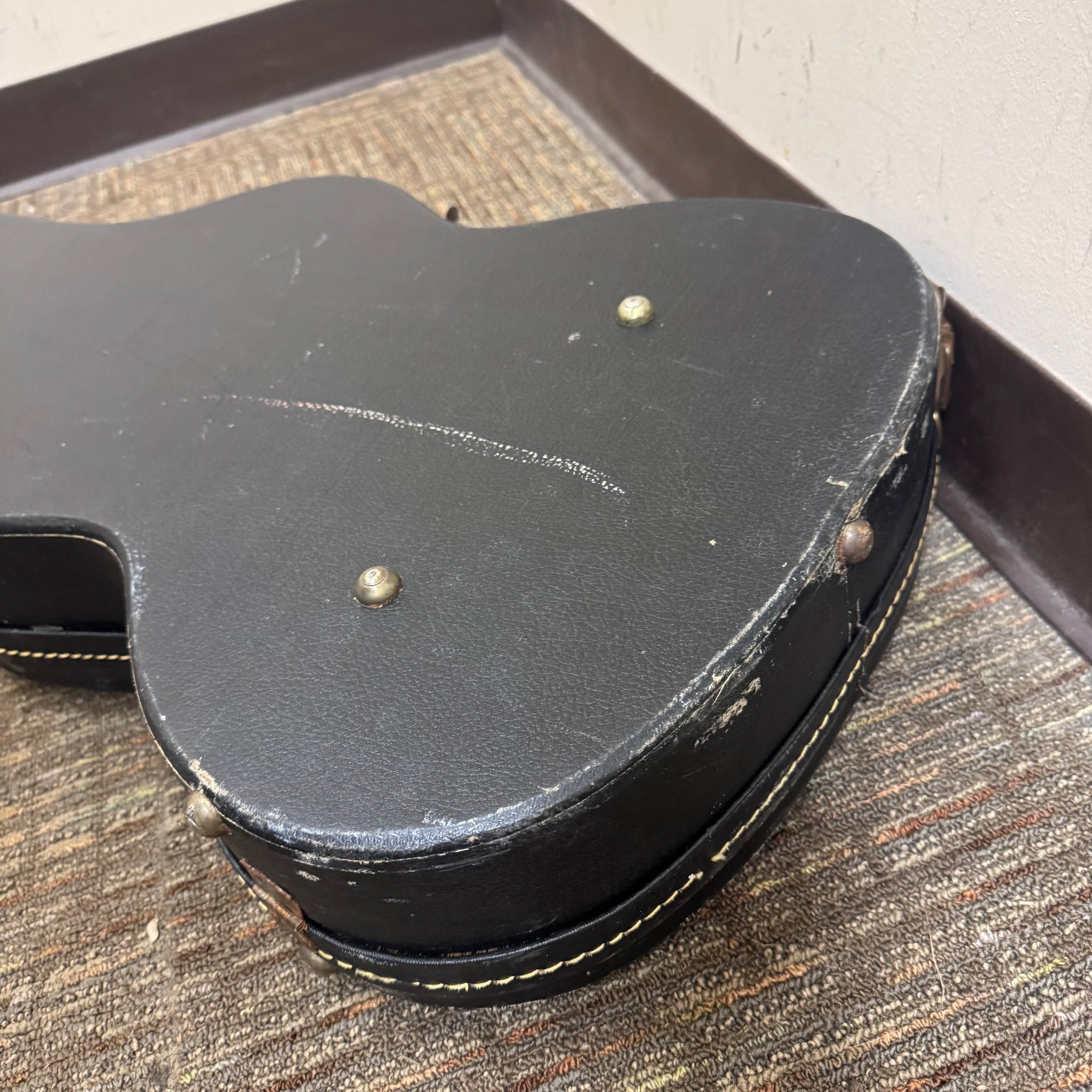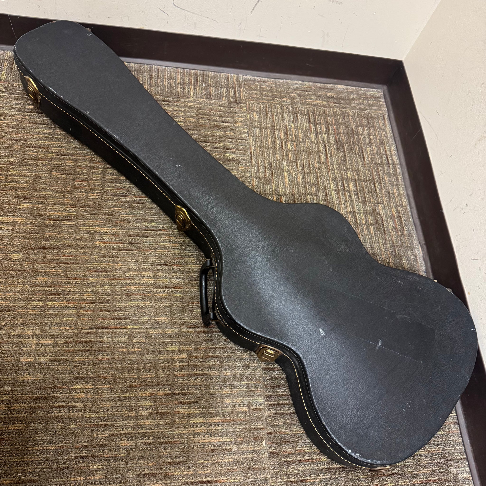 This is a hardshell bass case with some damage on the lower bout and scratches on the outside. This is possibly a Music Man case or a Gretsch case. Please view attached photos.
