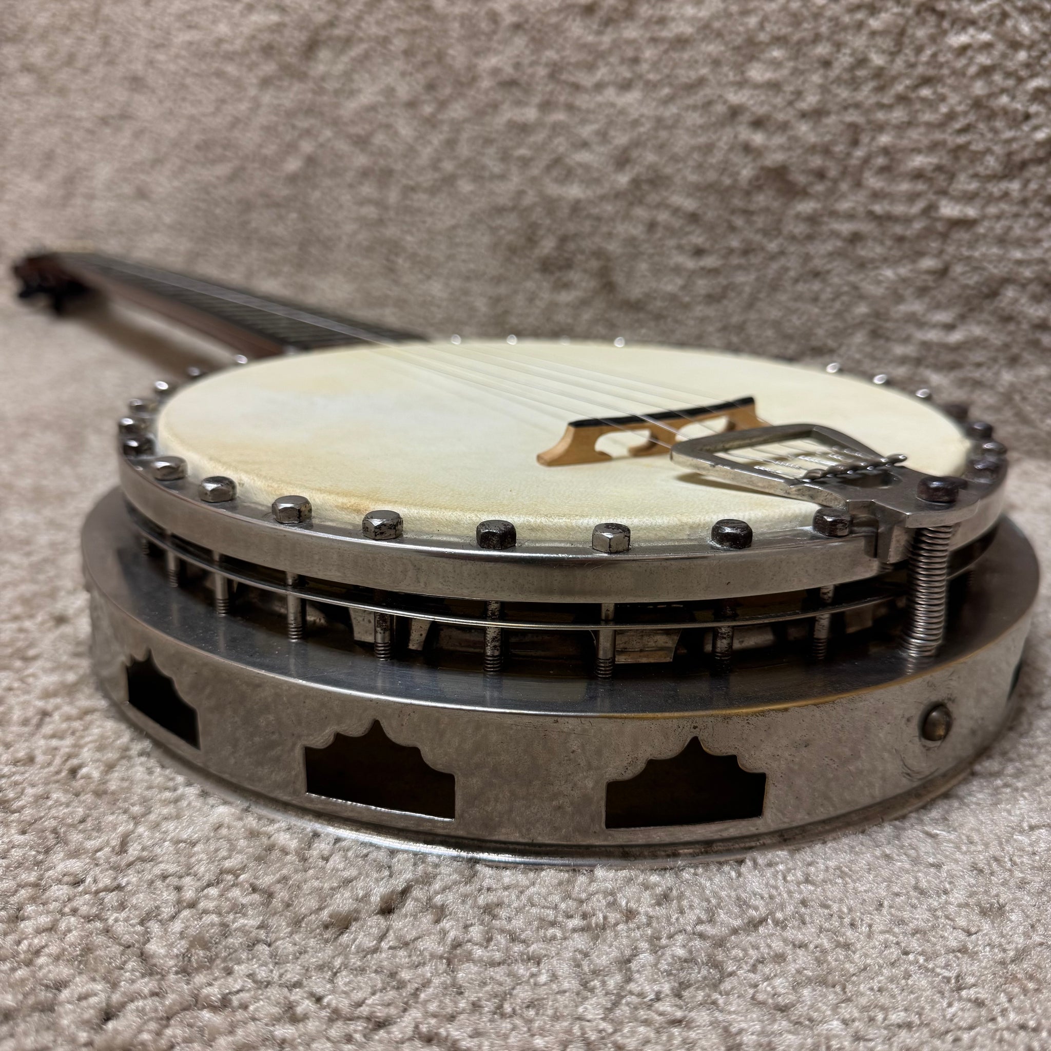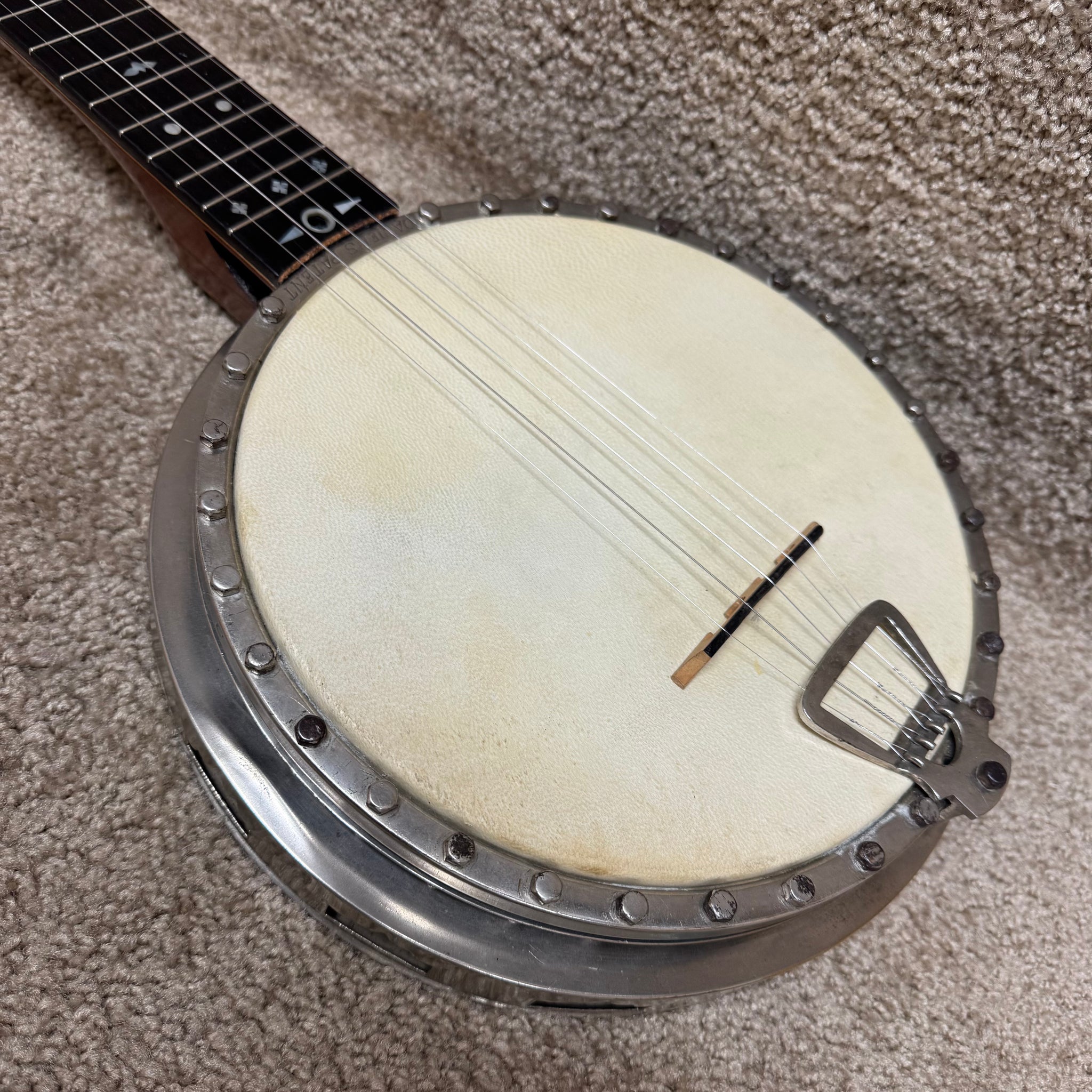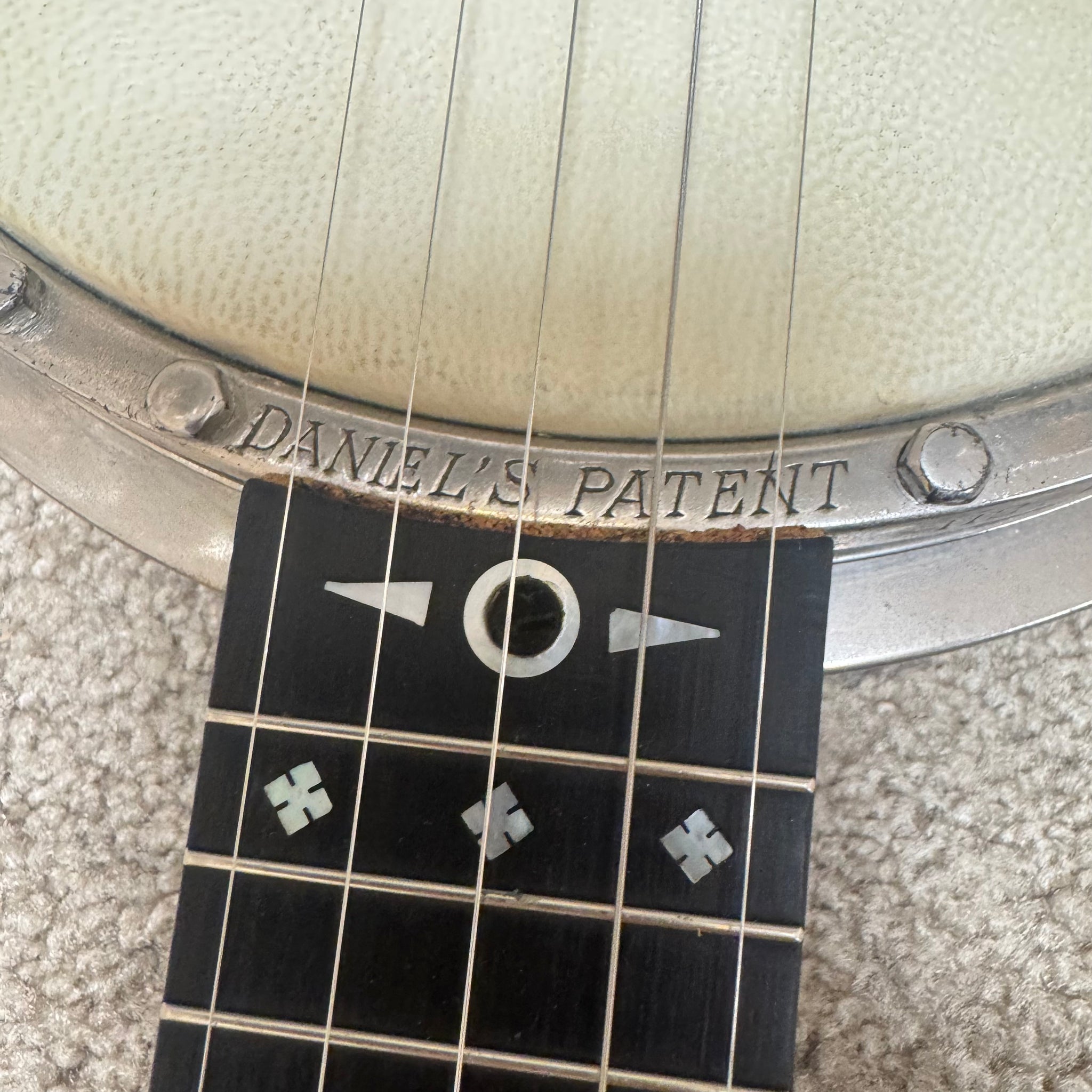 Daniels Patent Banjos were designed and assembled by Joe Daniels in London England, basing his work on his 1887 patents on a metal casing around the hoop and a tensioner spring for the tailpiece. While Daniels may have contracted the metal- and wood-working, he seems to have assembled the instruments himself.