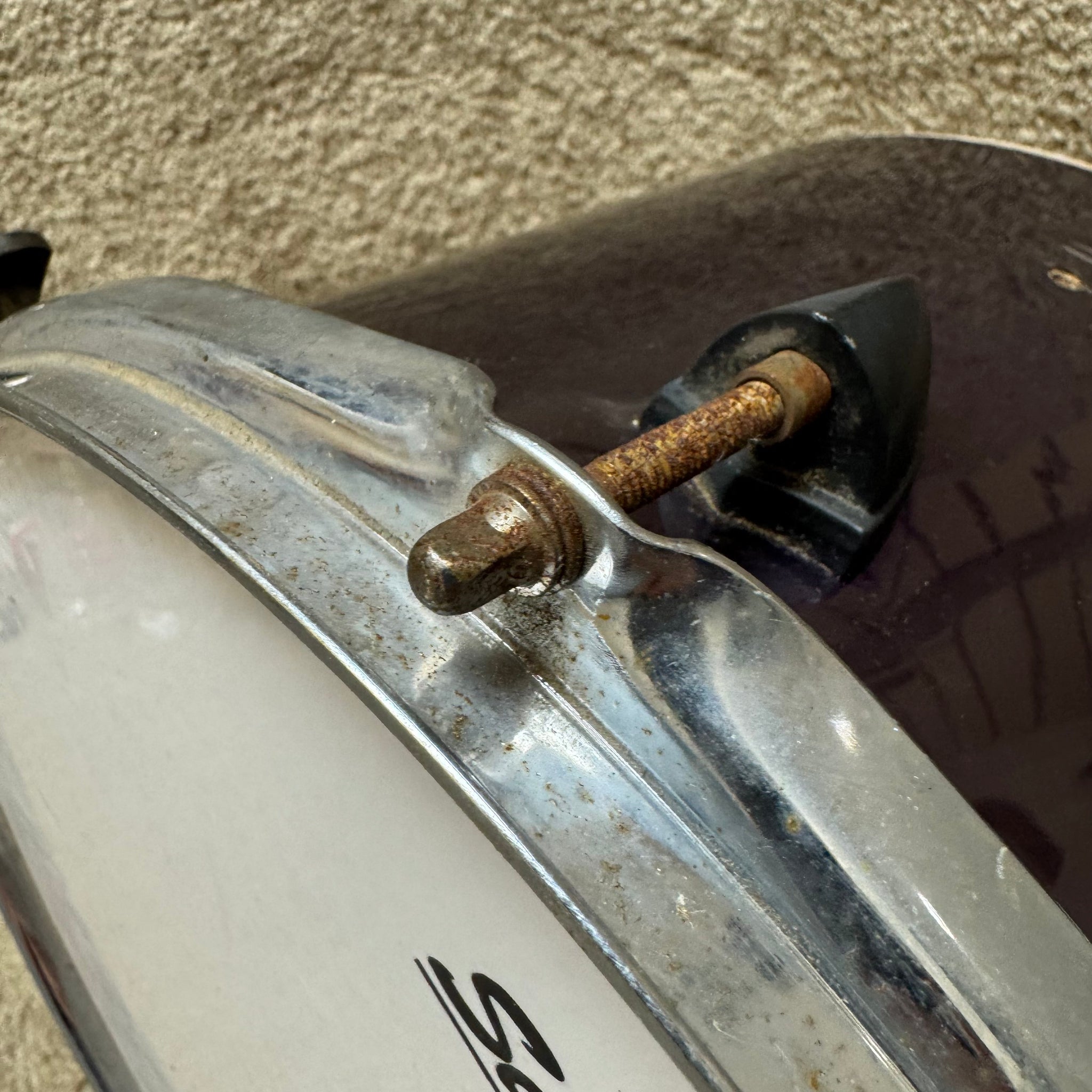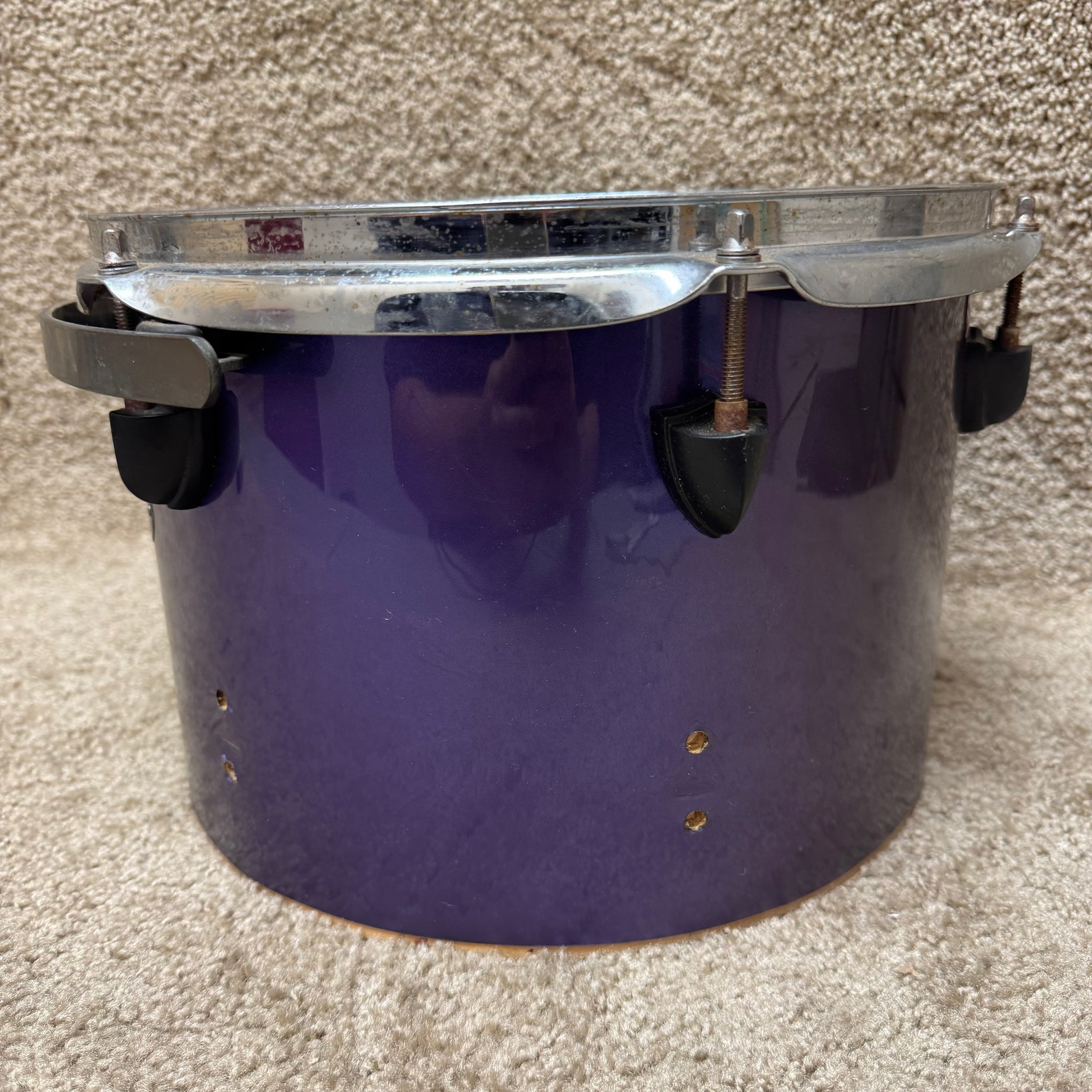 This purple DDrum Diablo tom is a 12x8 drum that unfortunately is missing the mounting bracket, resonant head and rim, tension rod and four lugs. There is also a good bit of corrsion present on the metal hardware and some staining on the wood inside of the drum (please view pictures included). Because of these reasons we are listing this as being in fair condition although it could be used as a concert tom.