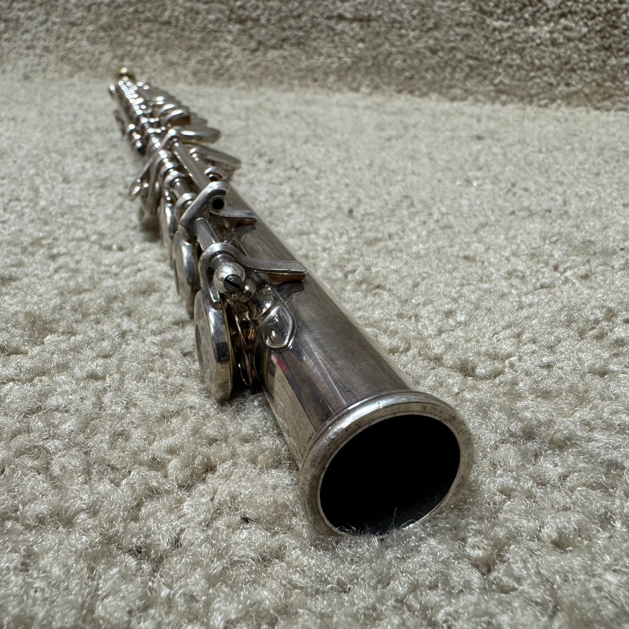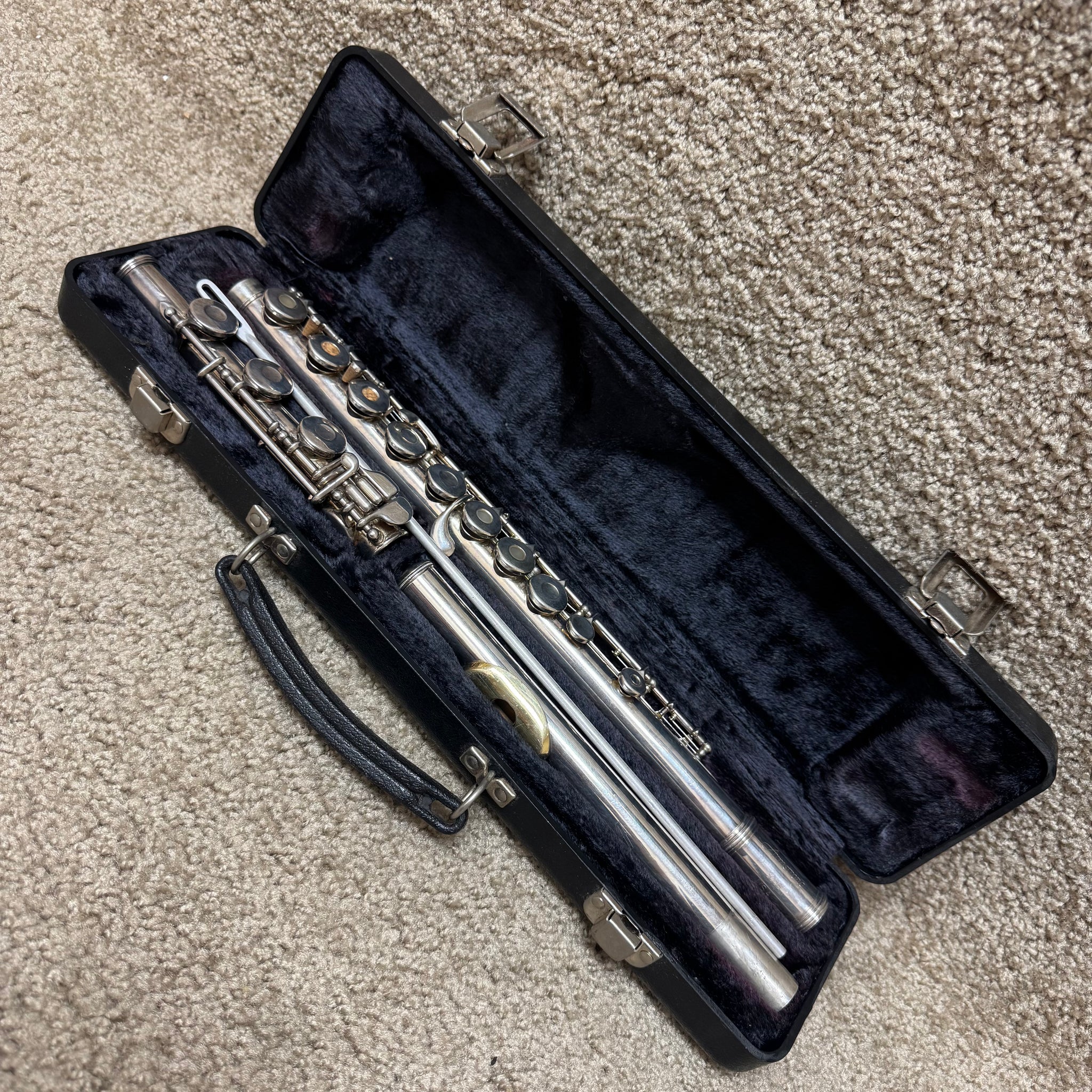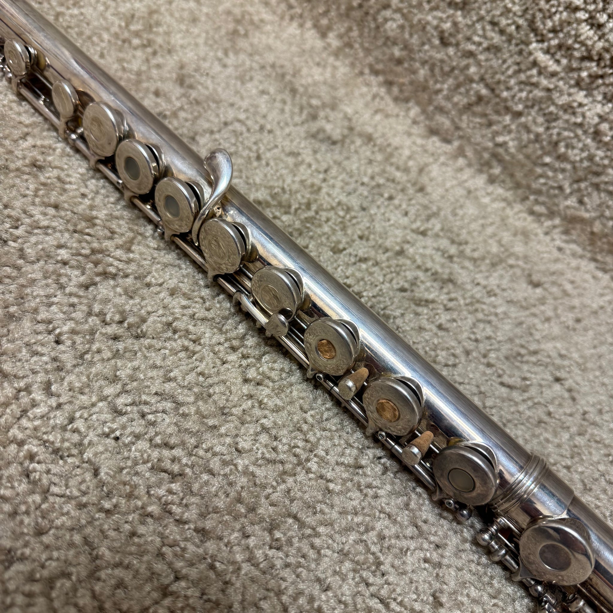Experience the exquisite craftsmanship of the Armstrong 305B Open Hole Flute, featuring a B foot joint for enhanced range and musical expression. This elegant instrument showcases a silver headjoint paired with a gold lip plate, offering a refined tonal quality and comfort for advanced players. Crafted in the USA, the flute is in very good condition and comes complete with its original case and cleaning rod, ensuring both protection and maintenance ease. Ideal for musicians seeking a sophisticated, professional-level flute that combines heritage design with superb playability. Shows some light signs of play but is overall in very good condition.