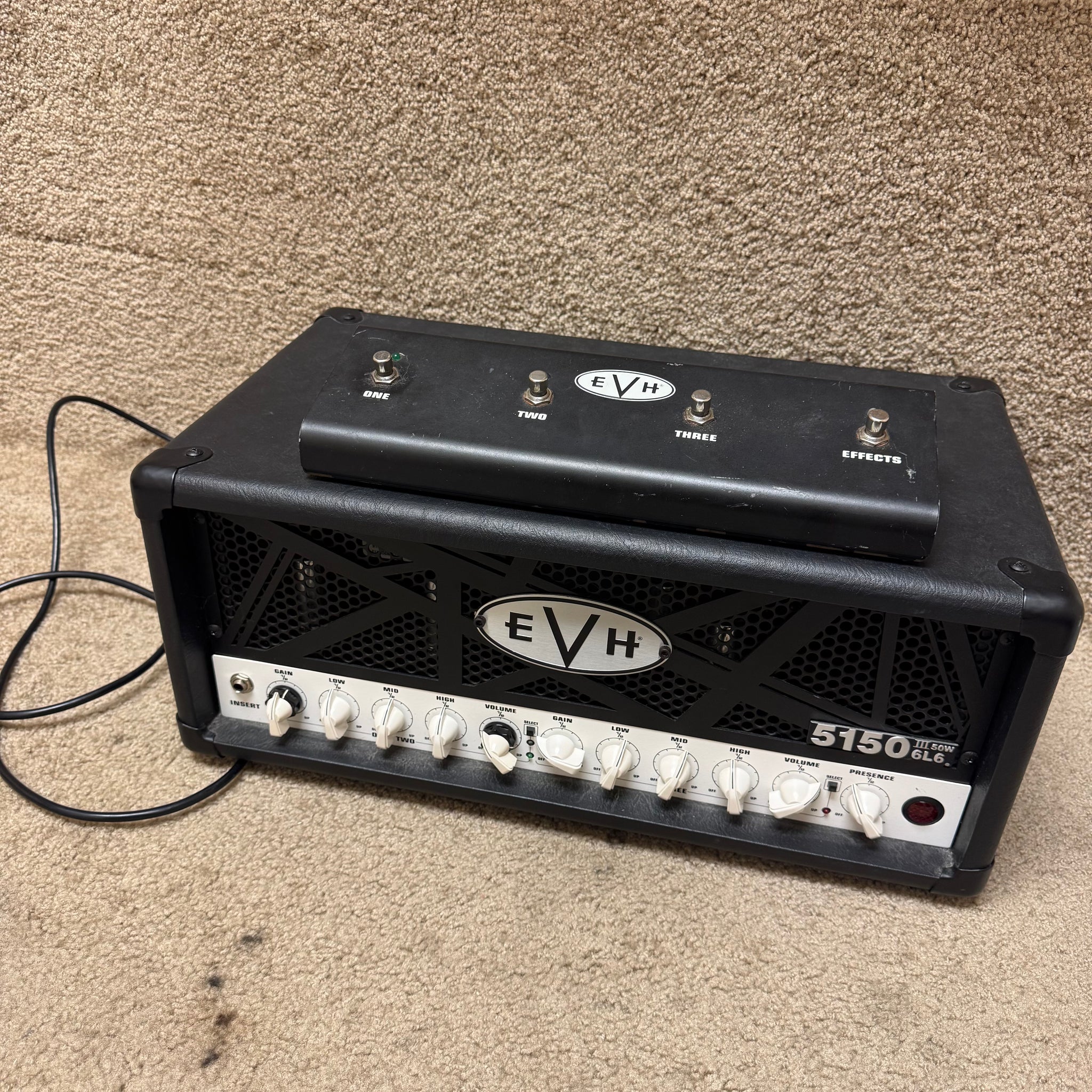 This amp head also includes selectable impedance (4, 8 or 16 ohms), dual parallel speaker output jacks, effects loop, headphone jack, line out and a four-button footswitch with 1/4" input jack and MIDI input. Loaded with pure EVH sound and power, the EVH 5150III 50W 6L6 Head is wrapped in Black otextured vinyl and features our instantly recognizable black EVH-striped steel grille.
