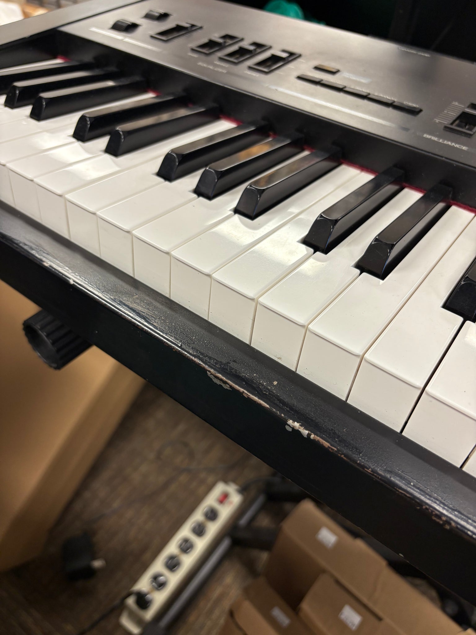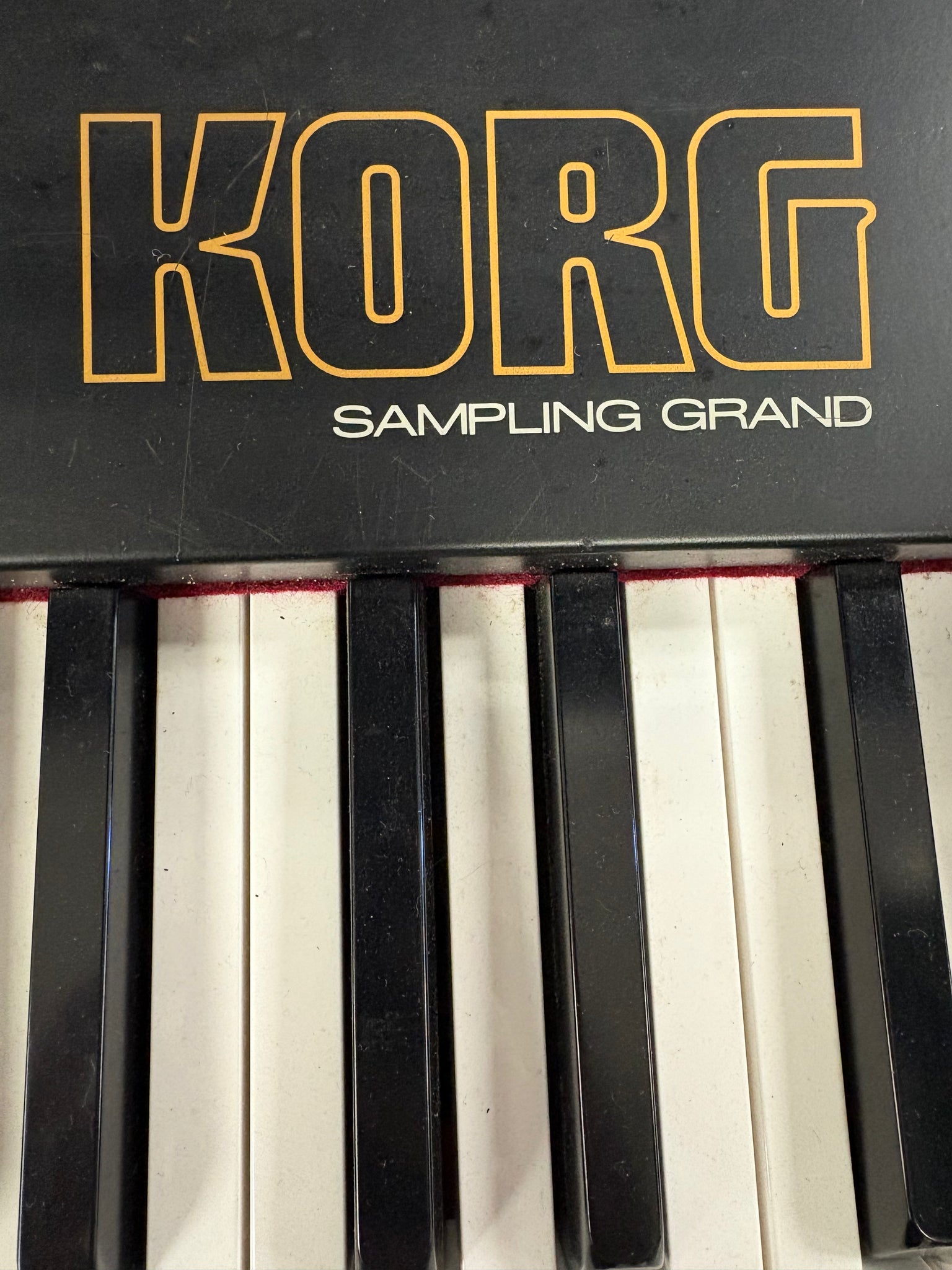 This Korg SG-1 shows a few scratches near the weighted keys as well as on the top of the keyboard near the controls. All weighted keys are in solid working condition while all electronics also appear to be working as expected. A power cable is inlcuded.