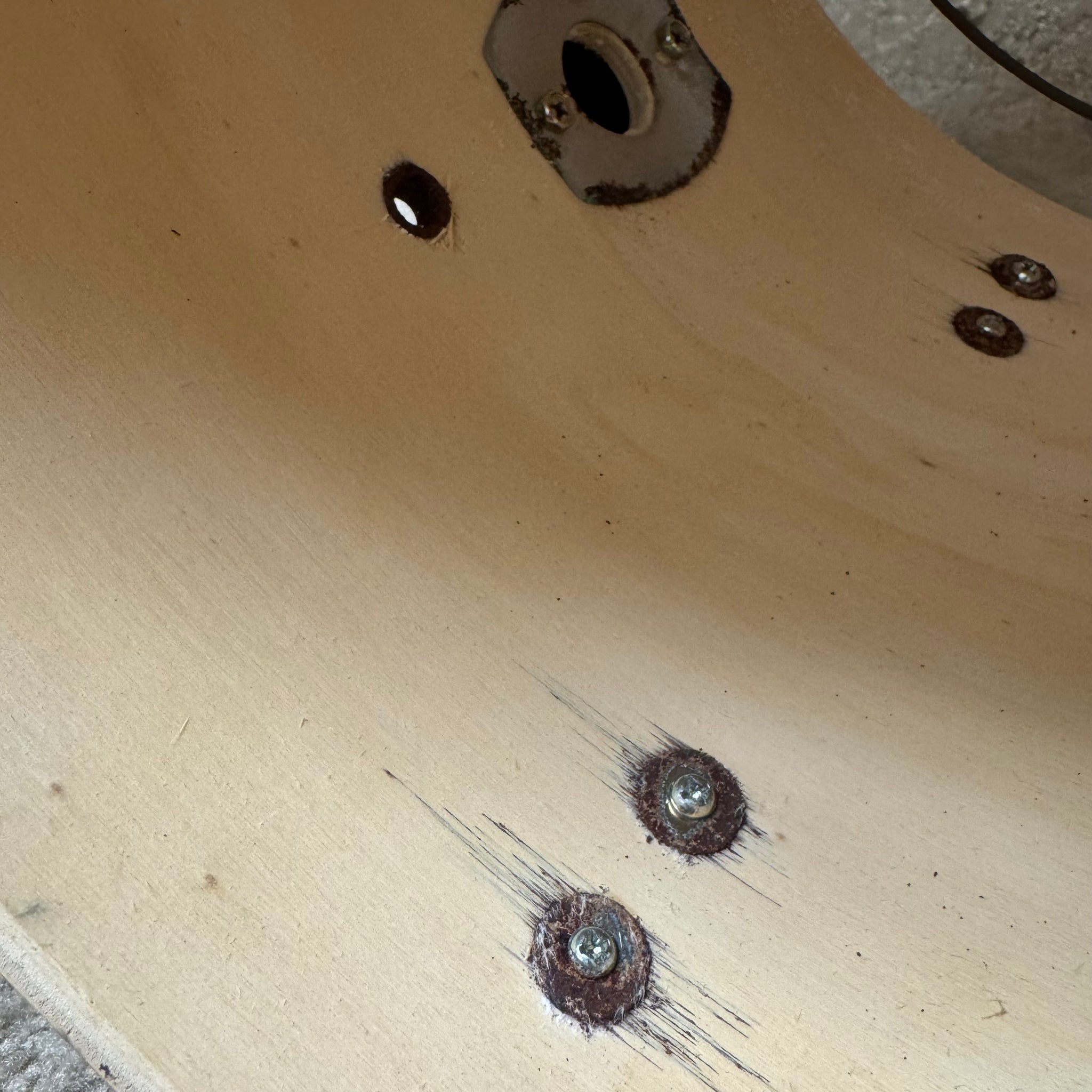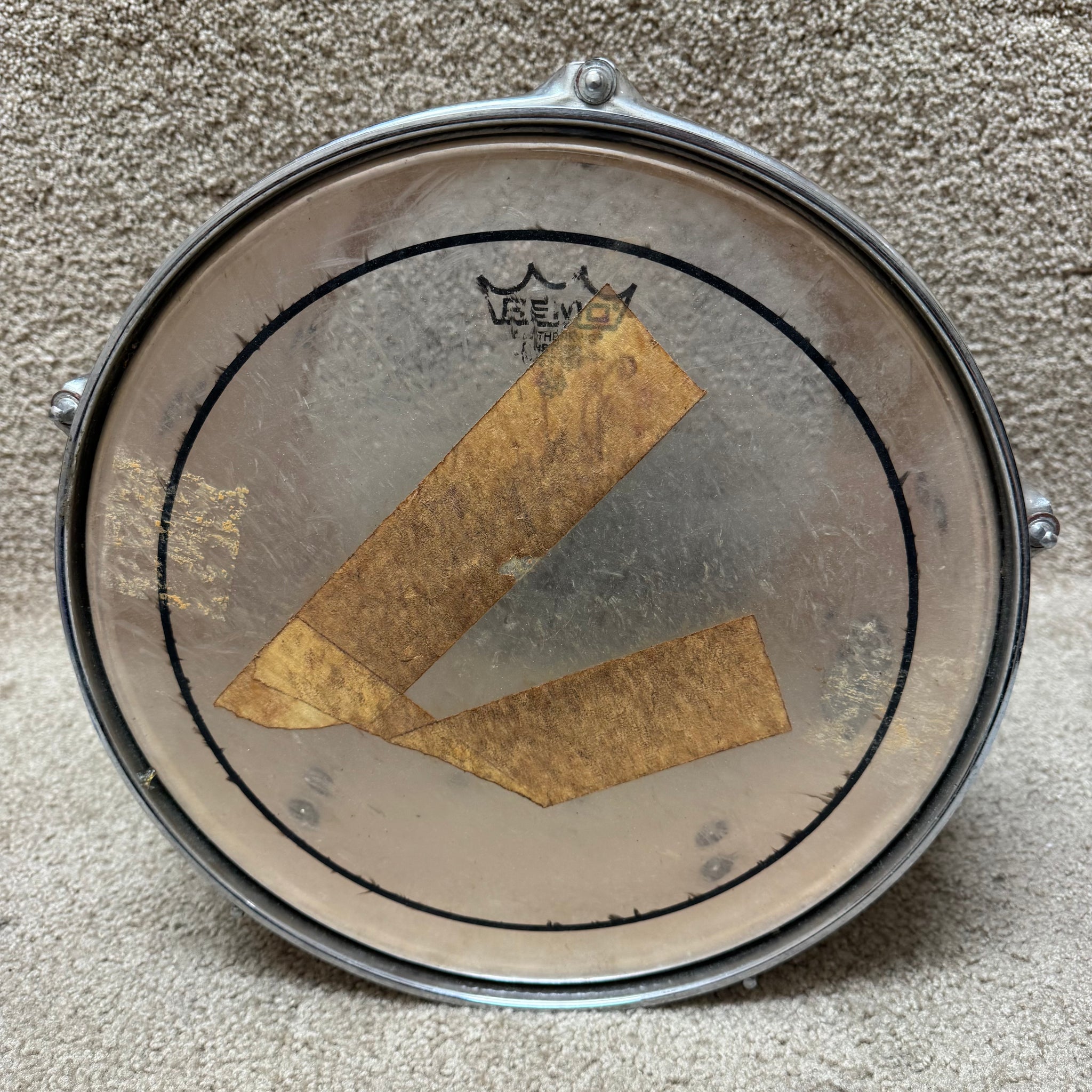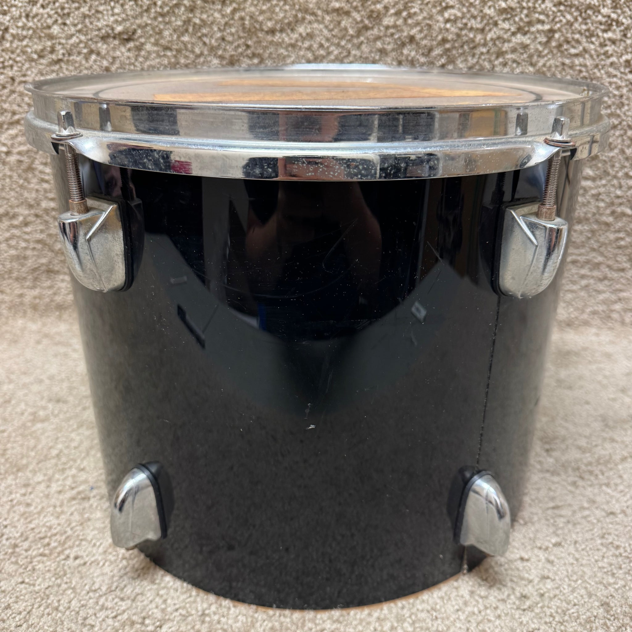 This is a Fender 13"x11" Starcaster drum. It is missing the resonant side hoop, head, and tension rods. There are some scratches, blemishes and overall signs of use. Inside hardware is corroded. This drum could be fixed up or used as a concert tom. Overall considering all it needs to be in good playing shape, this drum is in fair condition.