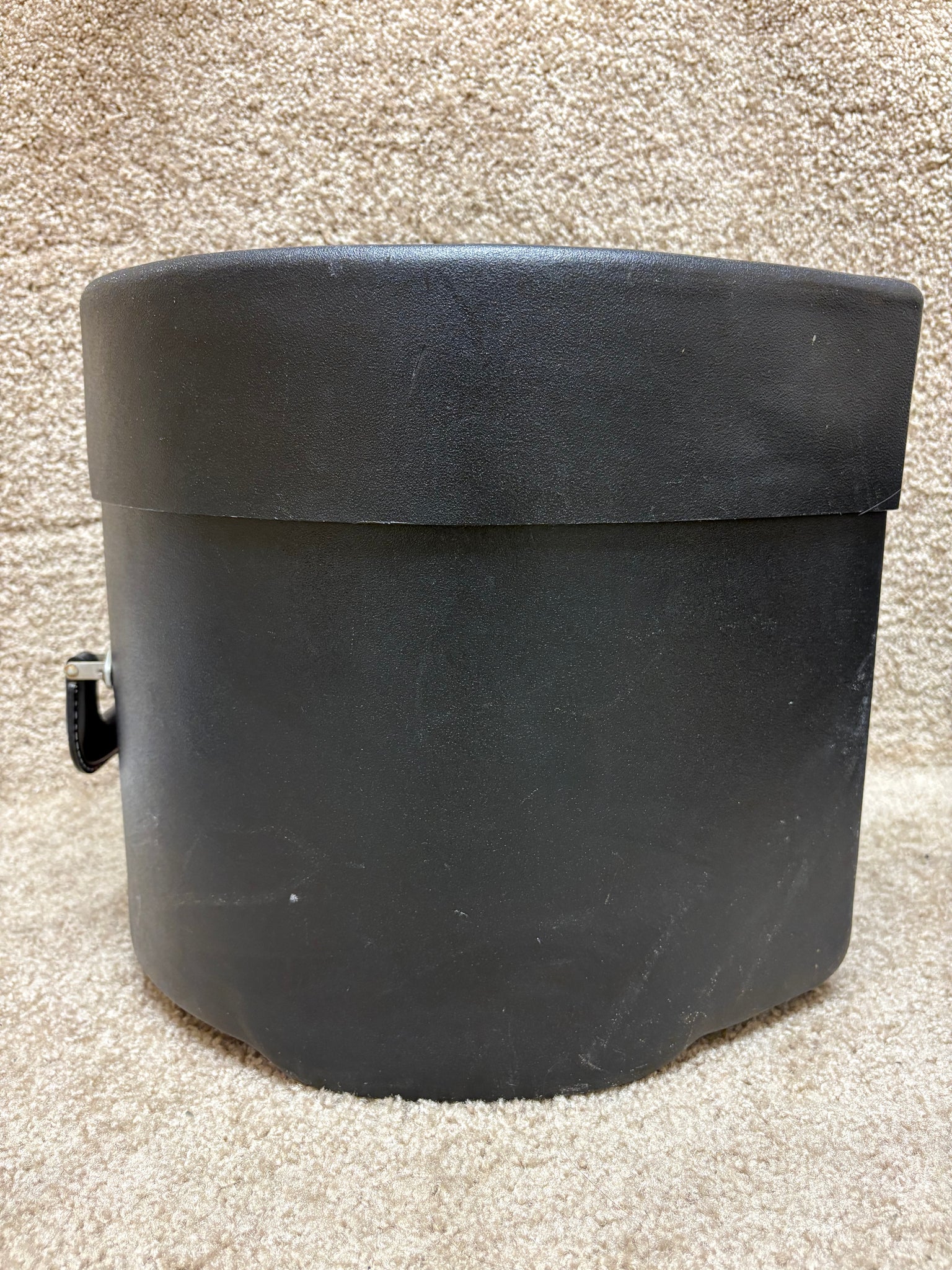 This 10x10 Enduro case does not feature foam padding in its interior and has a few scratches on its exterior. Both the handle and strap are in a secure state making this a valuable case to take on the road or to store your drums securly.