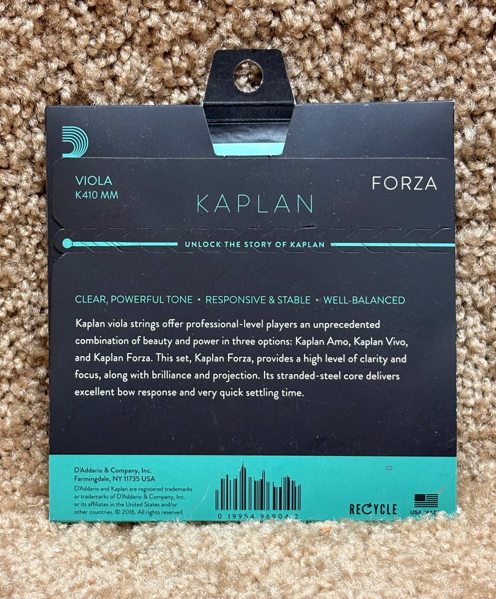 Take your sound from neutral to nuanced with Kaplan Forza viola strings. Kaplan Forza offers a powerful, sweet tone, with a clean, fast response for superb control and versatility. Coupled with their quick break-in period and enhanced projection, Kaplan Forza strings provide a professional level of performance, which allows violists to easily convey their instrument’s rich tonal palette. Kaplan strings are available in a range of sizes to suit most advancing players.