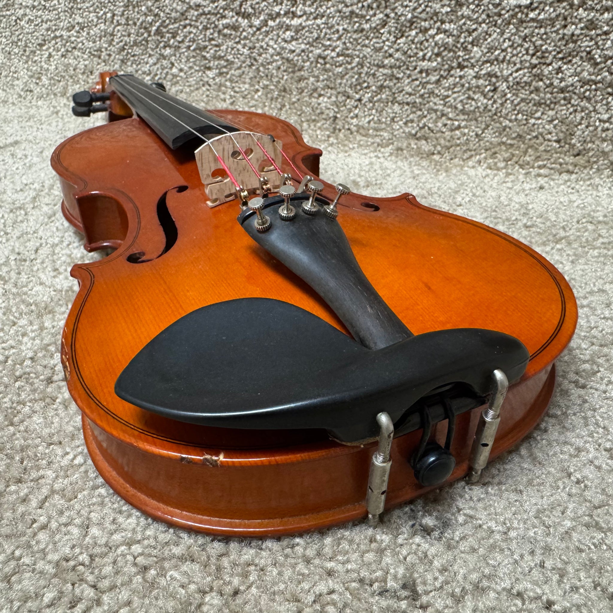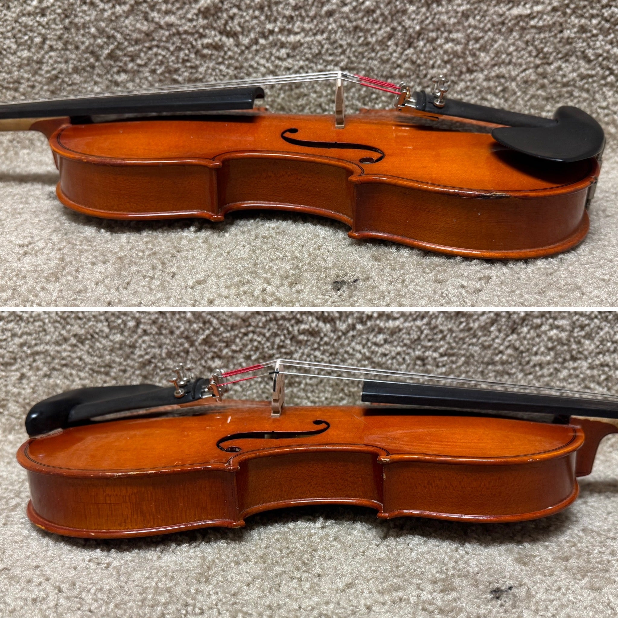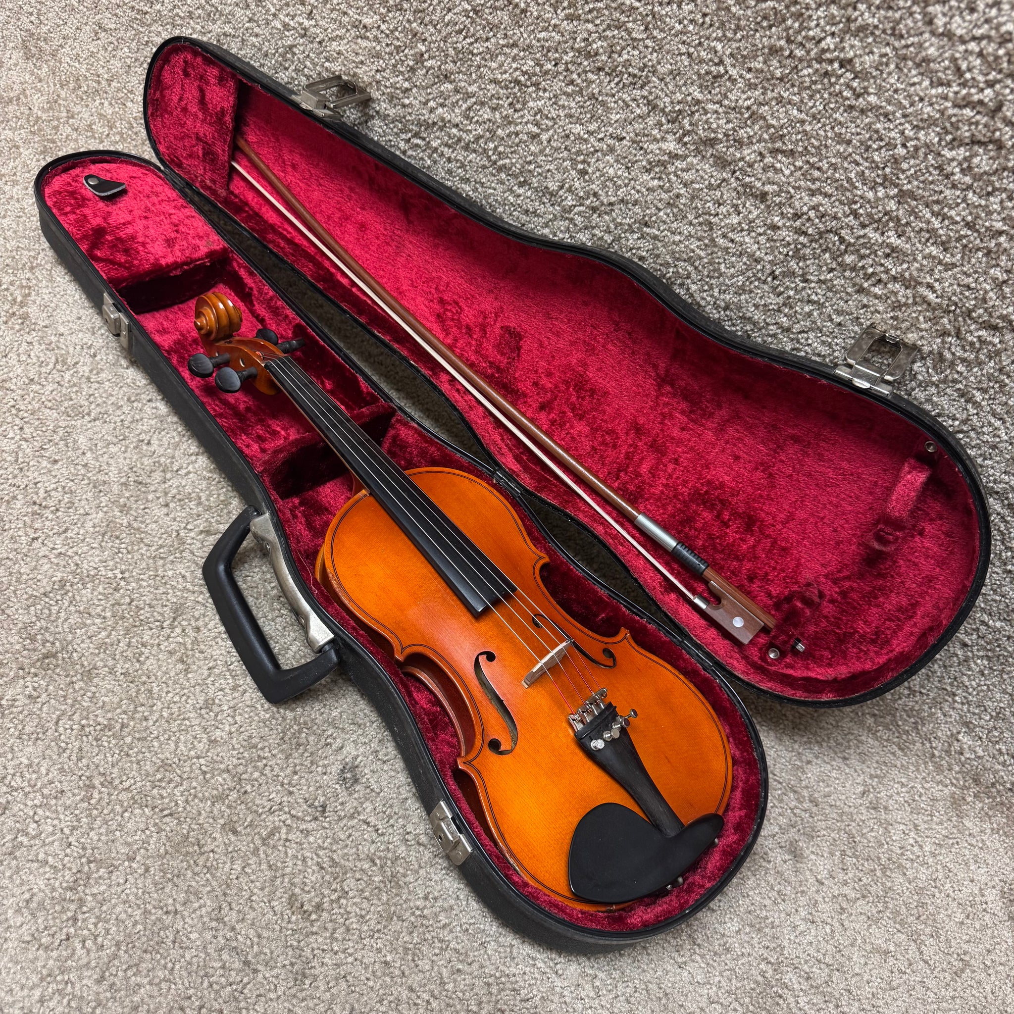 This is a used Otto Bruckner 1/2 size violin that comes with a bow and a hardshell case. There are some light signs of wear and dings around the edge of the top and back, but other than that this violin is in very good condition. Overall, this would be an excellent item to purchase for a new student or a beginner violin player!
