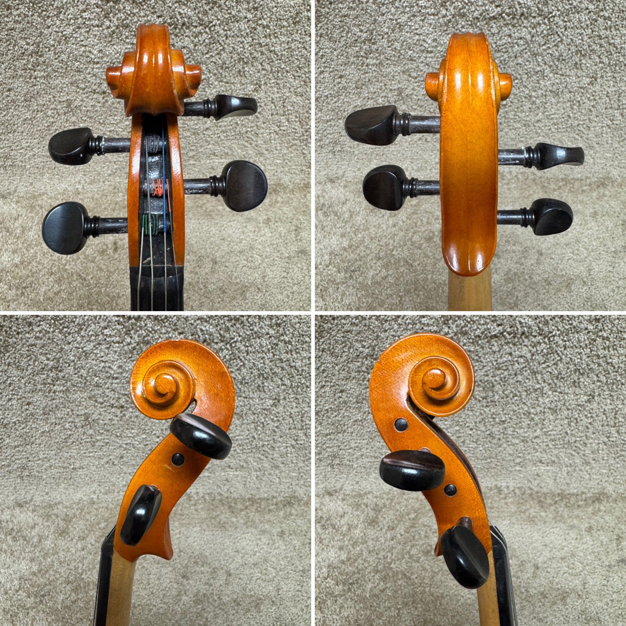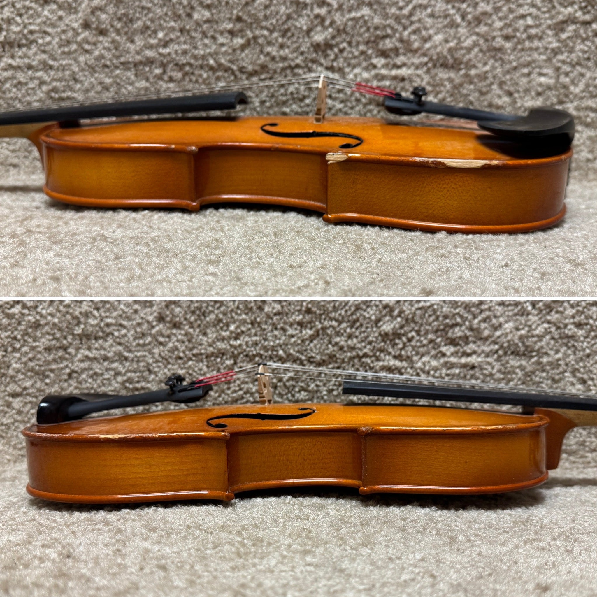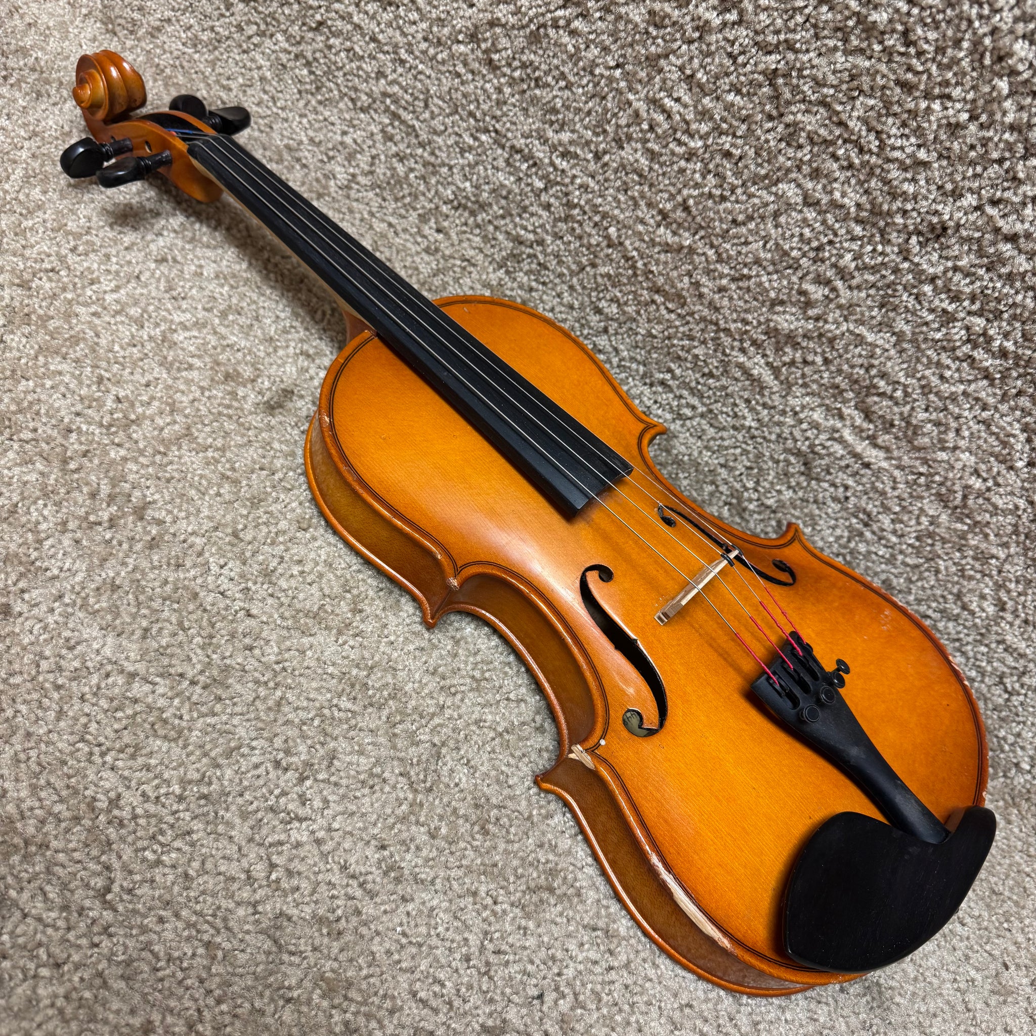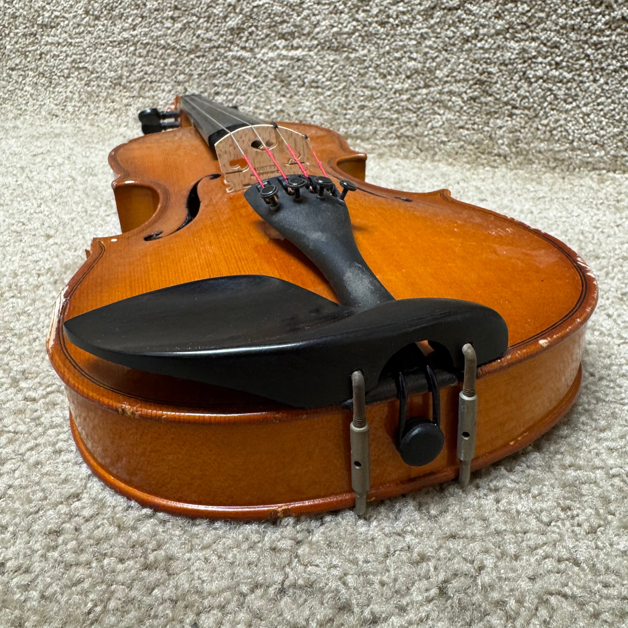 This Ton Klar The Orchestra is a 3/4 sized, student violin. This intrument has some cosmetic wear such as scratches and light dings particularly on the edge of the lower bout. It is otherwise clean and plays well.