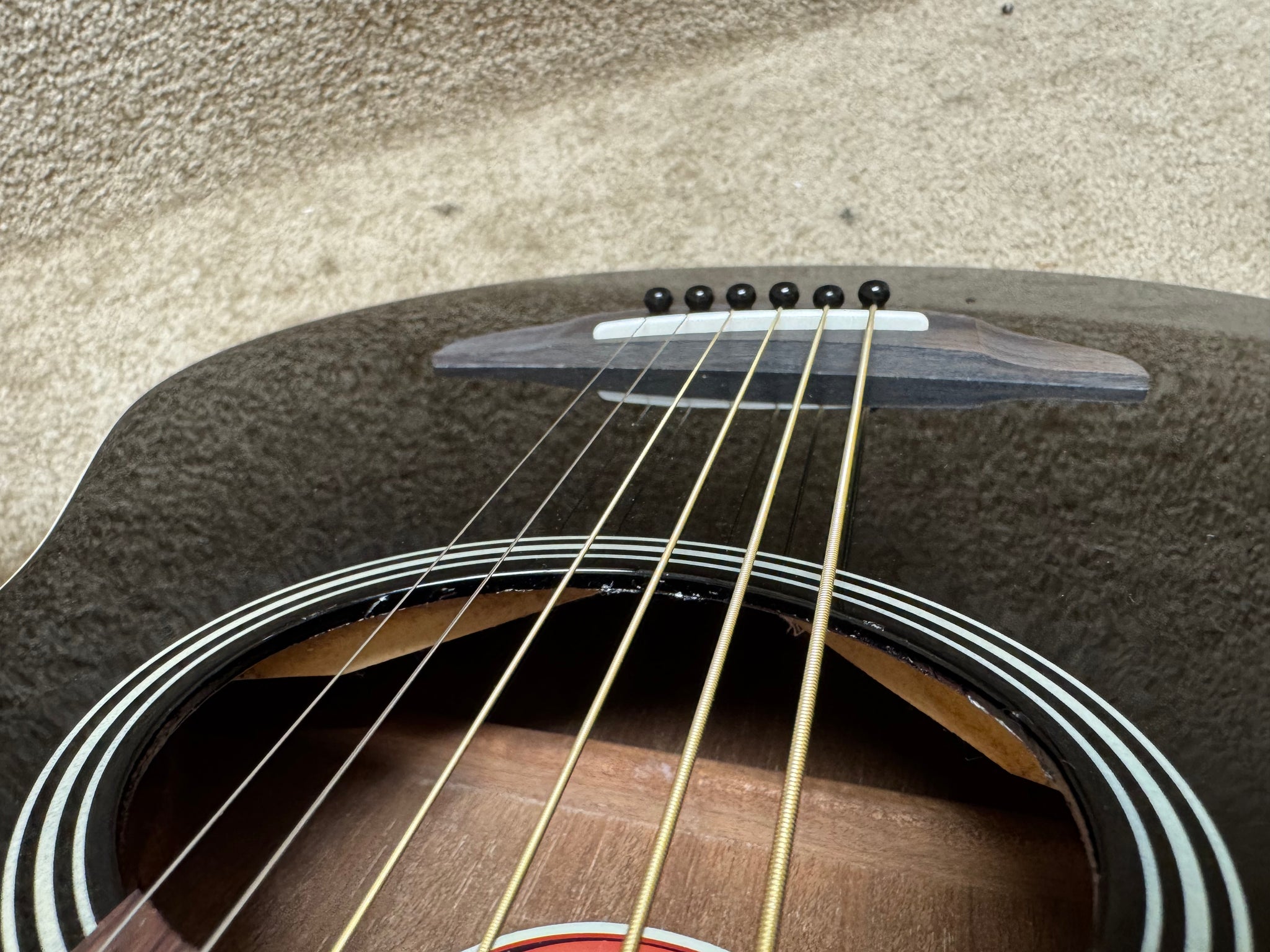 This smaller sized acoustic-electric guitar will be perfect for a younger player, someone of smaller stature, or anyone looking for a guitar that's easier to travel with! It has a short 22-7/8" scale length that makes playing a breeze and gives a looser, lighter tension feel to the strings. Using heavier gauge strings will help it feel more similar to a standard sized acoustic in terms of tension. The body is about 2-3/4" deep toward the neck joint which tapers out to about 3" toward the bottom bout. So you've got a very compact instrument with onboard electronics and tuner, making this a very versatile choice for anyone needing to go electric!