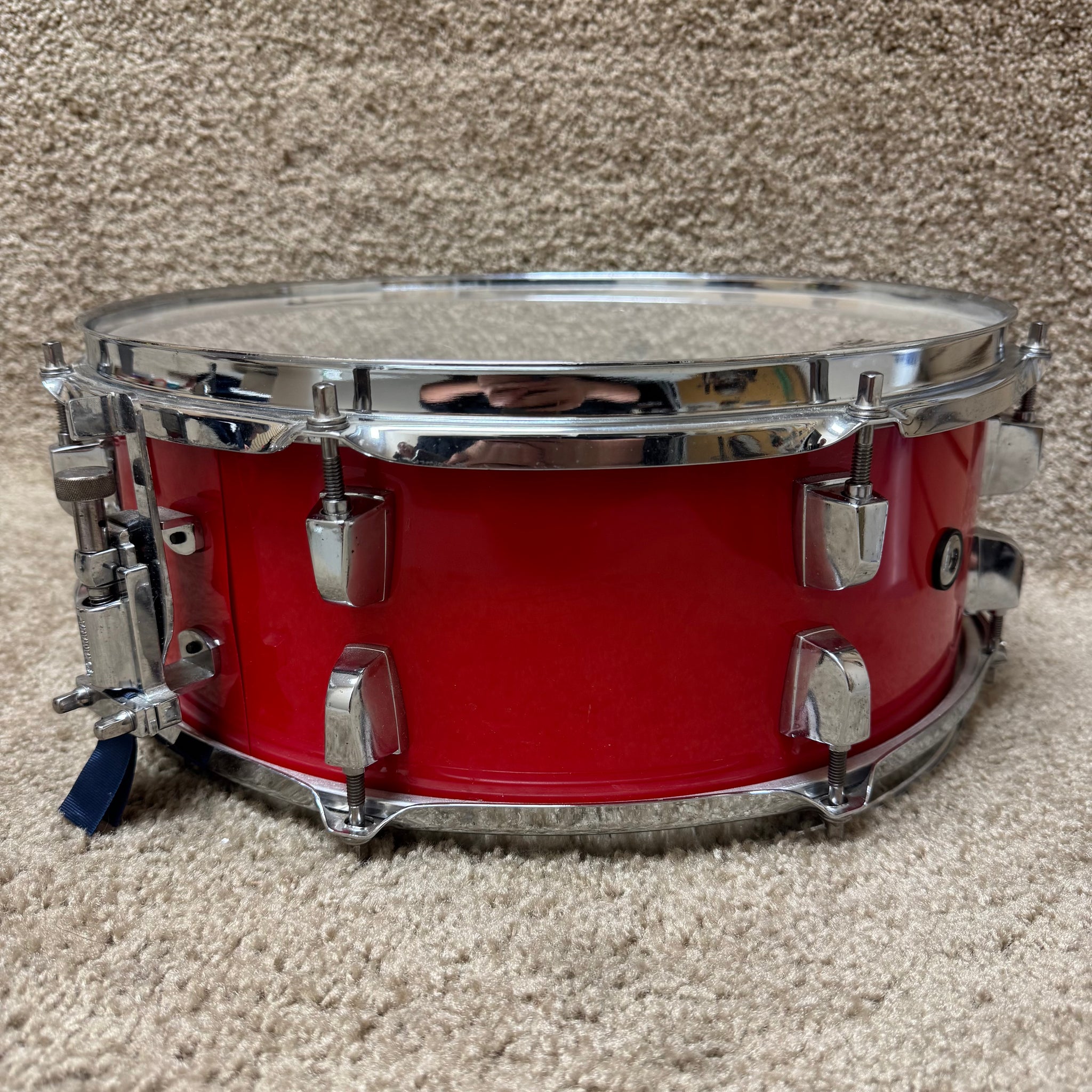 This pre-owned Yamaha Rydeen Snare Drum combines striking red aesthetics with reliable performance. The 14x5.5" poplar shell produces a balanced tone with quick response, ideal for drummers building their first or second kit. Well-maintained and backed by Yamaha's reputation for quality construction, it's a practical choice that won't compromise on sound or durability. There is a small tear on the snare side head but overall this drum is in very good shape.