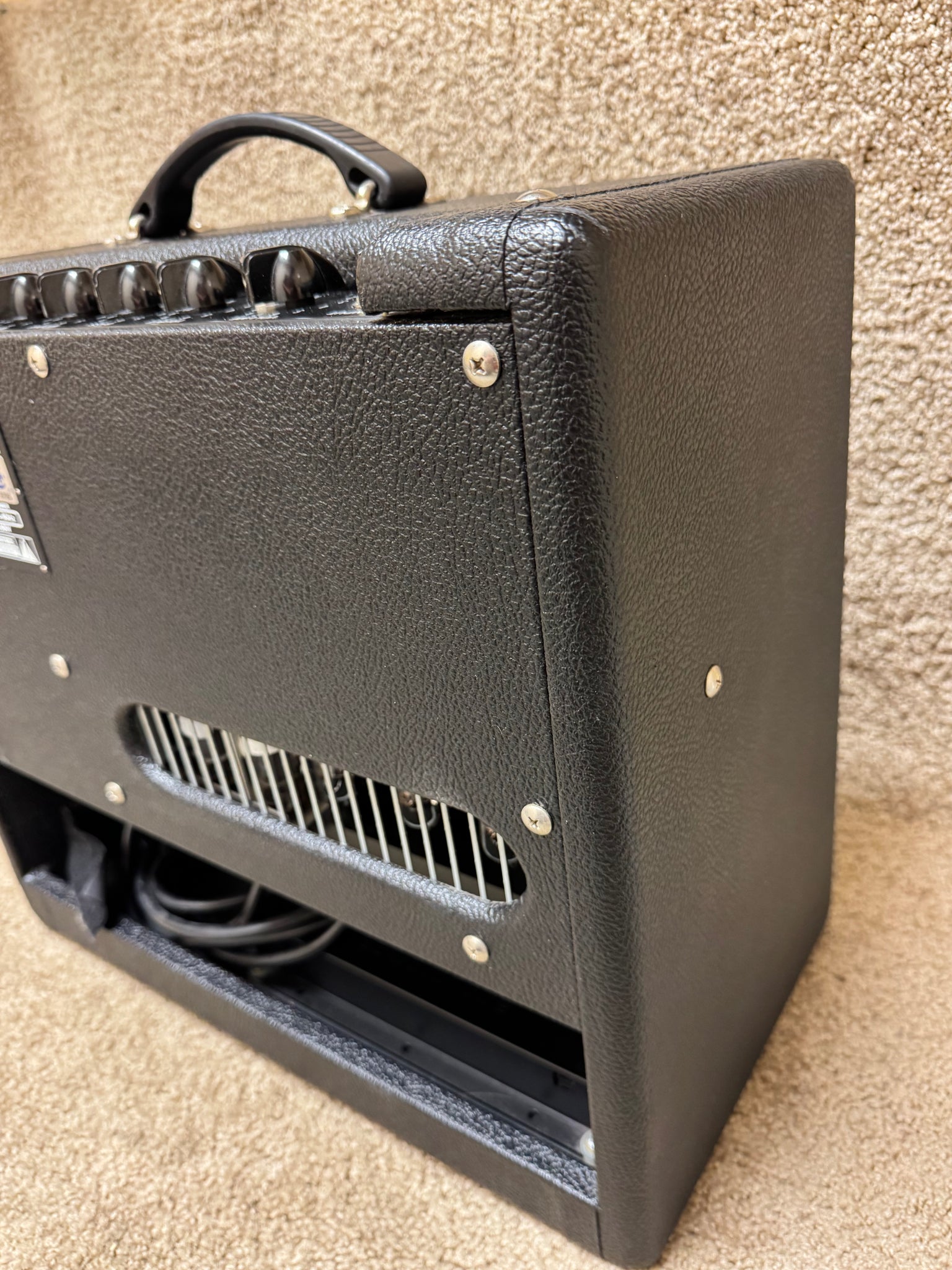 This 2011 Fender Blues Junior III stands out as a powerhouse in a compact package. Running 15 watts through a hand-picked 12-inch Celestion speaker, it produces the unmistakable warmth that made Fender legendary. The tube configuration—three 12AX7 preamp tubes paired with two EL84 power tubes—crafts responsive cleans and expressive overdrive that responds beautifully to your playing dynamics. The FAT boost switch adds aggressive presence when you need it, while built-in reverb and intuitive controls let you dial in your signature tone quickly. Whether you're playing intimate venues or rehearsal spaces, this gig-ready amp delivers authentic vintage character without the weight. In excellent condition, it's ready to inspire your next performance.