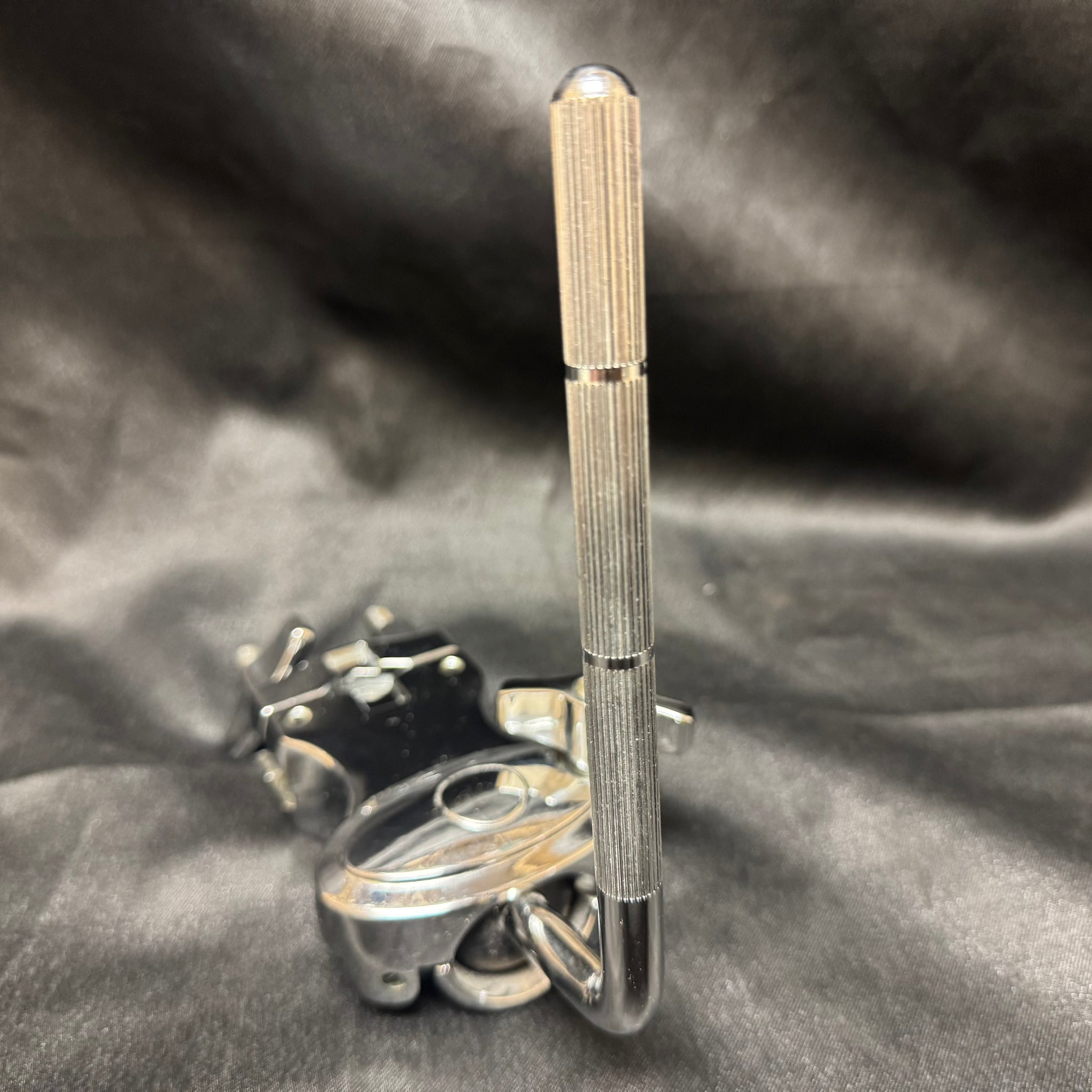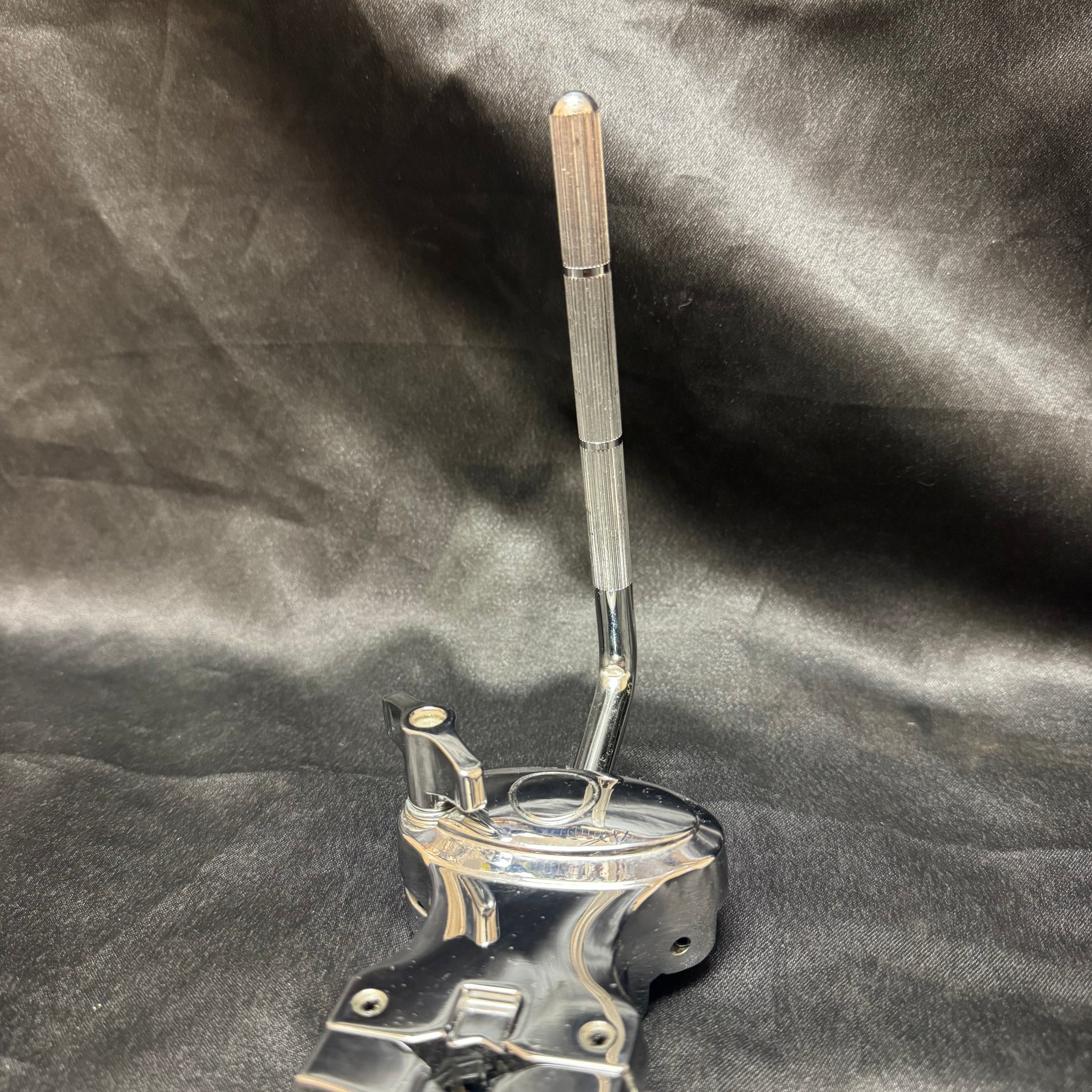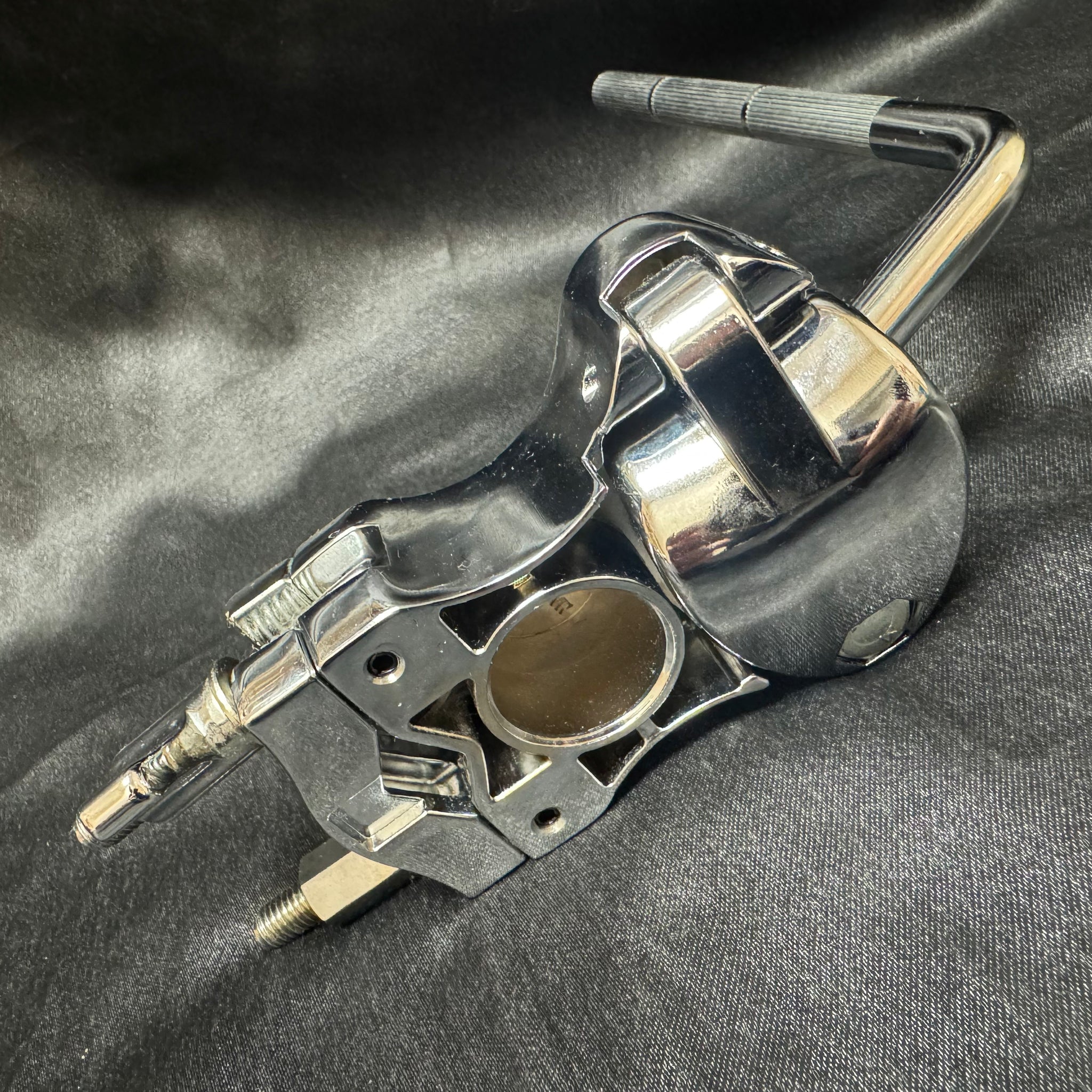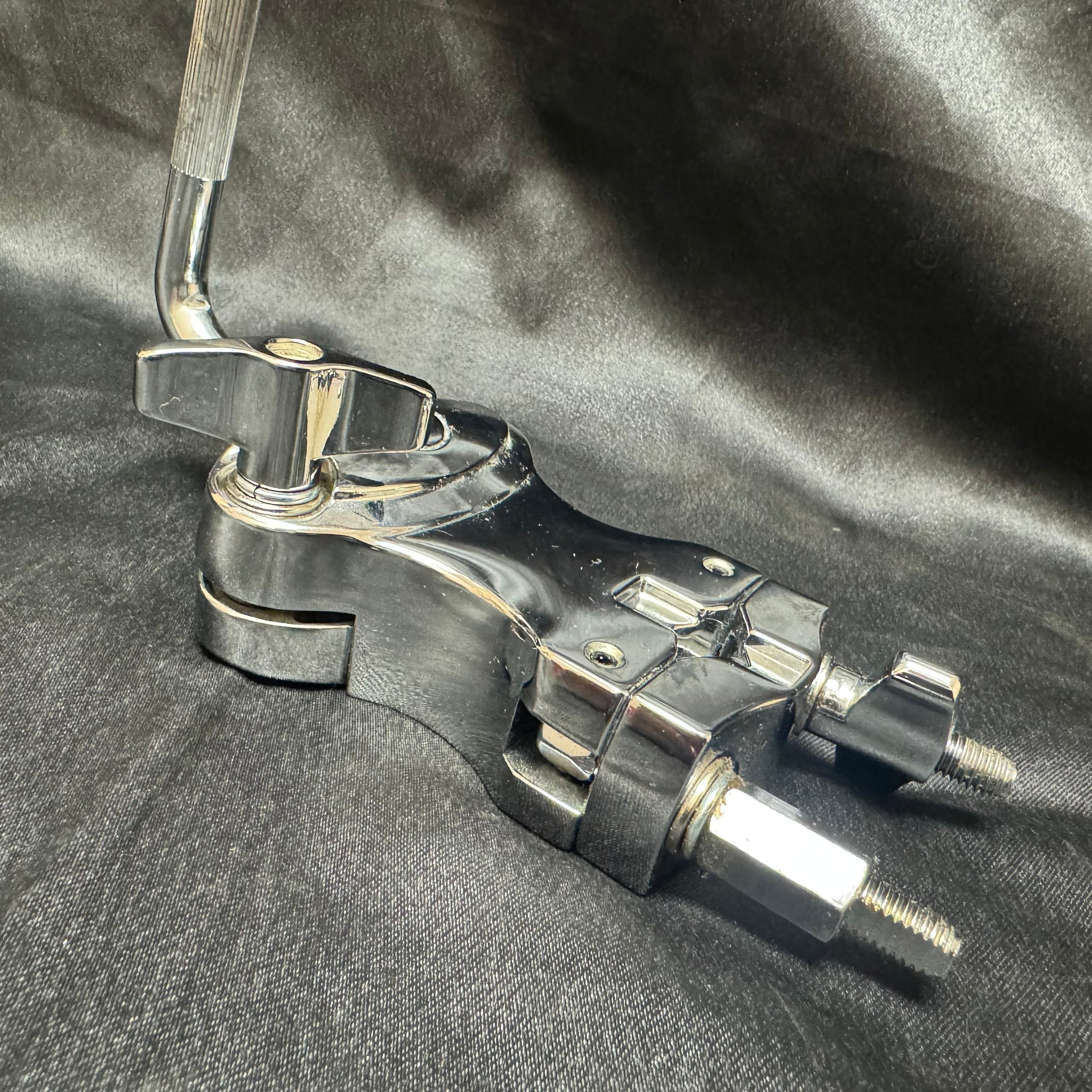This is a sturdy Pacific tom arm with clamp to attach a tom to a cymbal stand or a kick drum. The main clamp is adjustable via a wing nut.