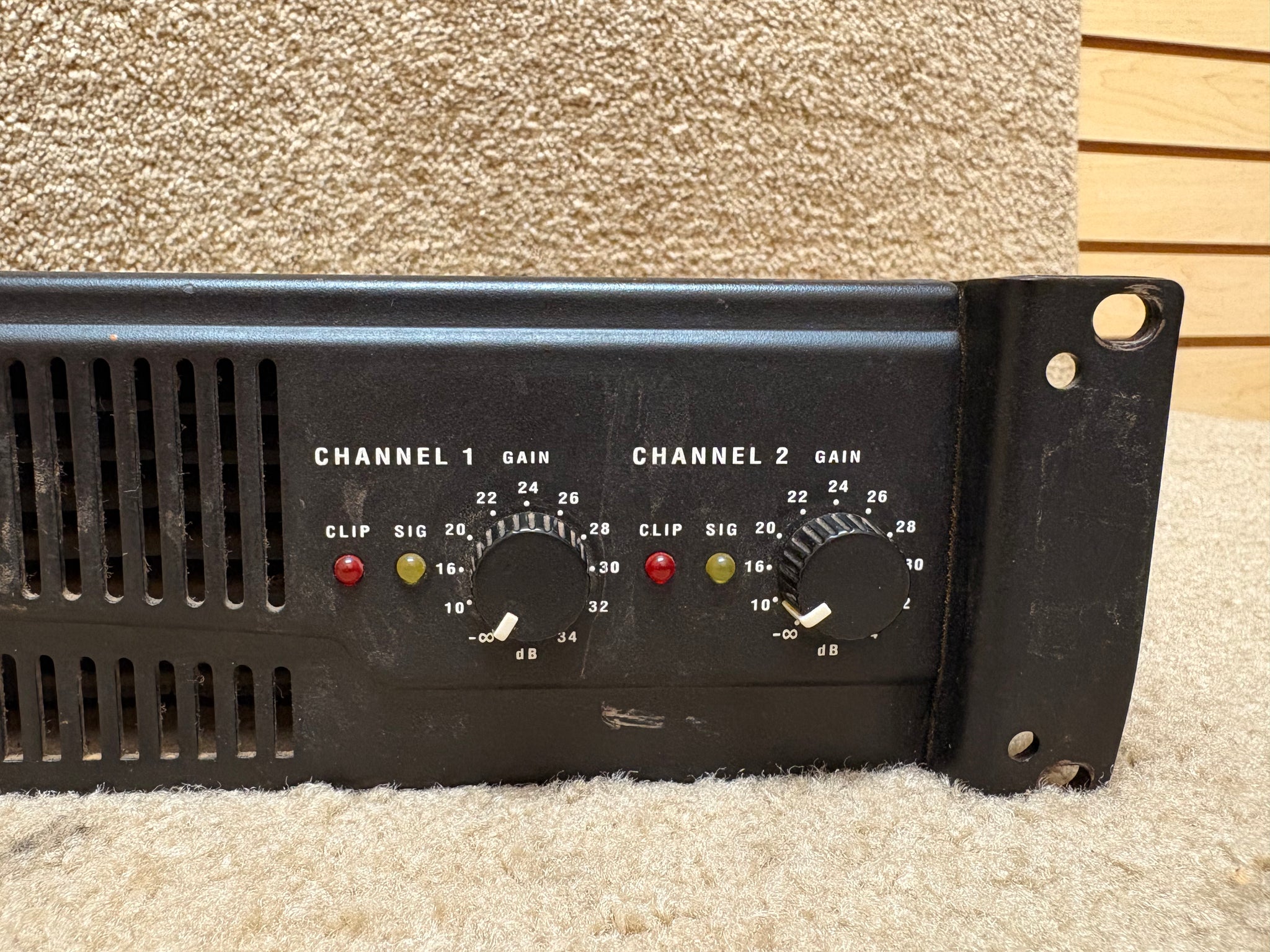 This QSC RMX2450 would be awesome for any of your power amp needs! It features both XLR and 1/4" inputs for both channels, with speakon and banana plug outputs. Each channel has a level control on the front of the unit. Includes IEC cable.
